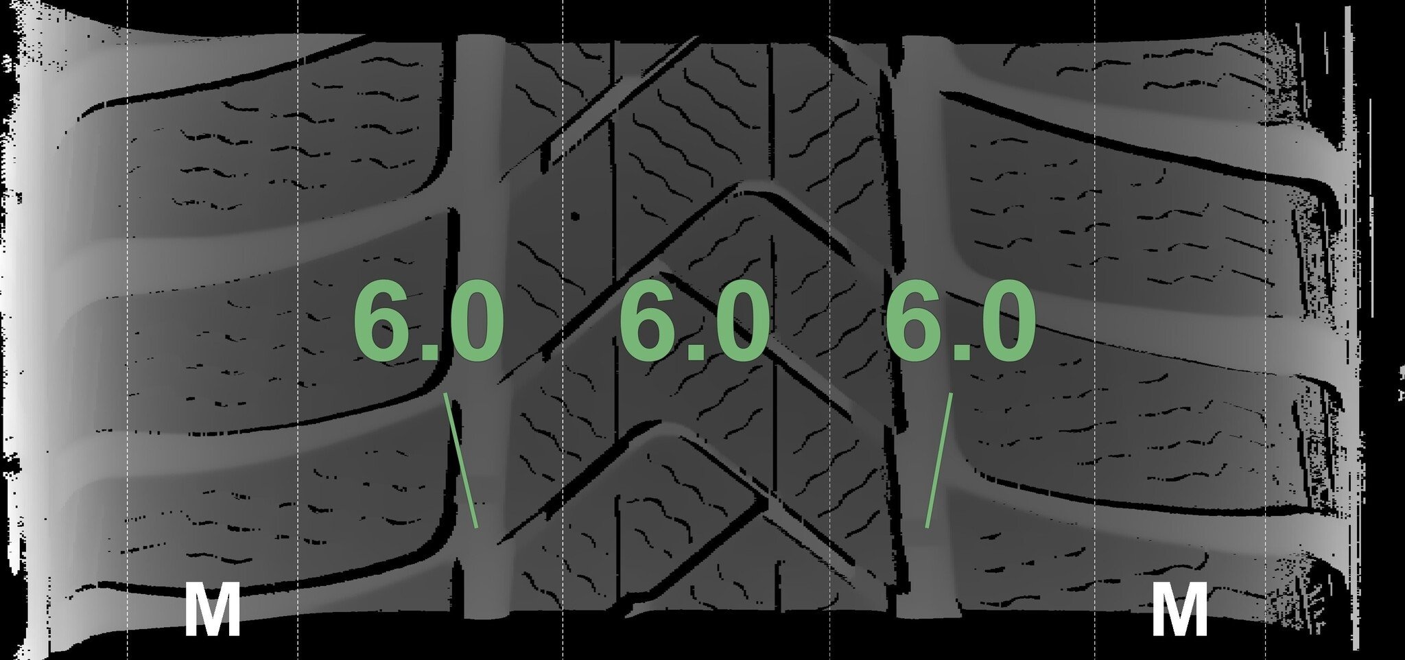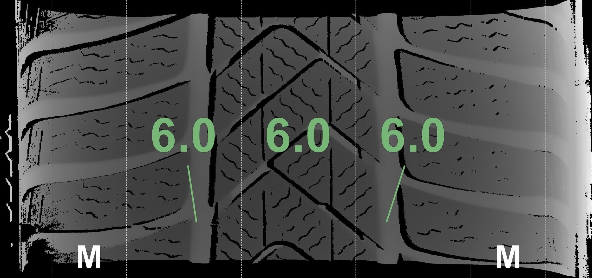 | Zustand | Profiltiefe | DOT | Vorderachse Links | Gebraucht | 6,0 mm | 4922 |