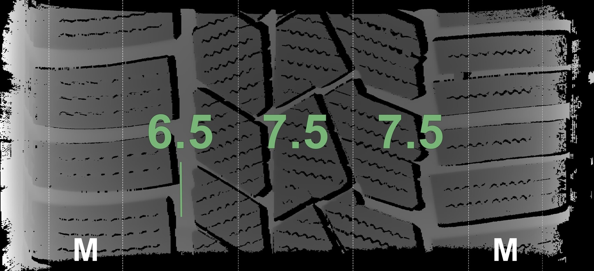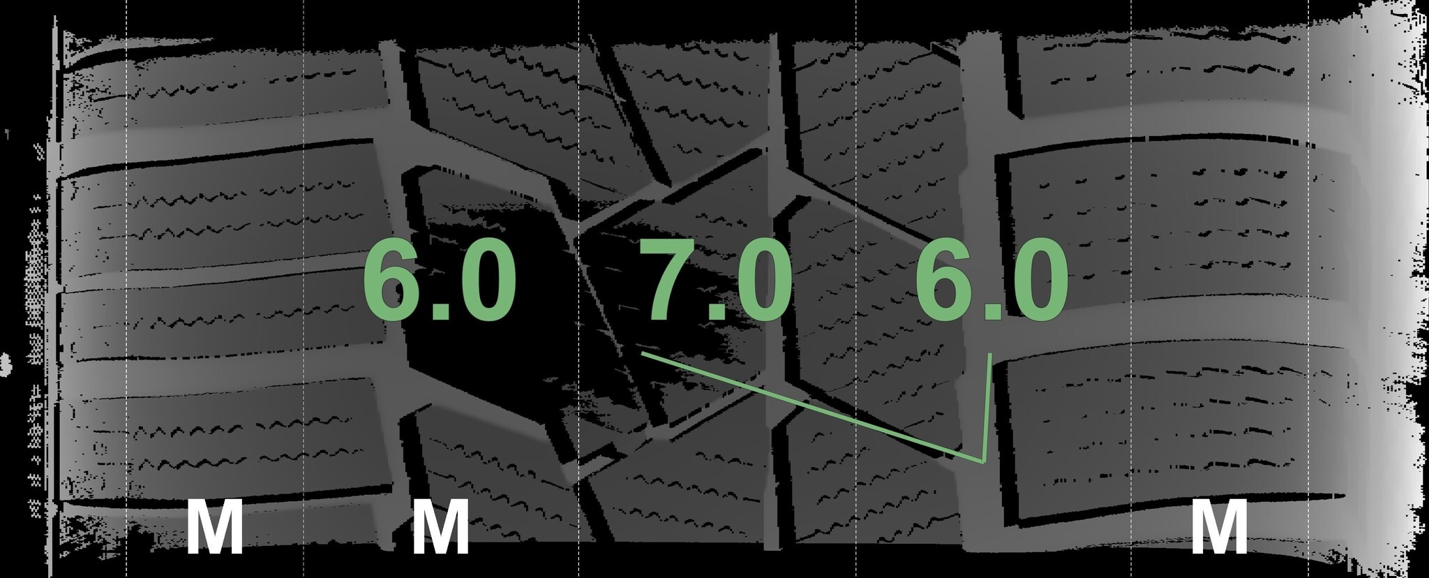 Die gemessenen Profiltiefen und Details zu den Felgen sind oben abgebildet.