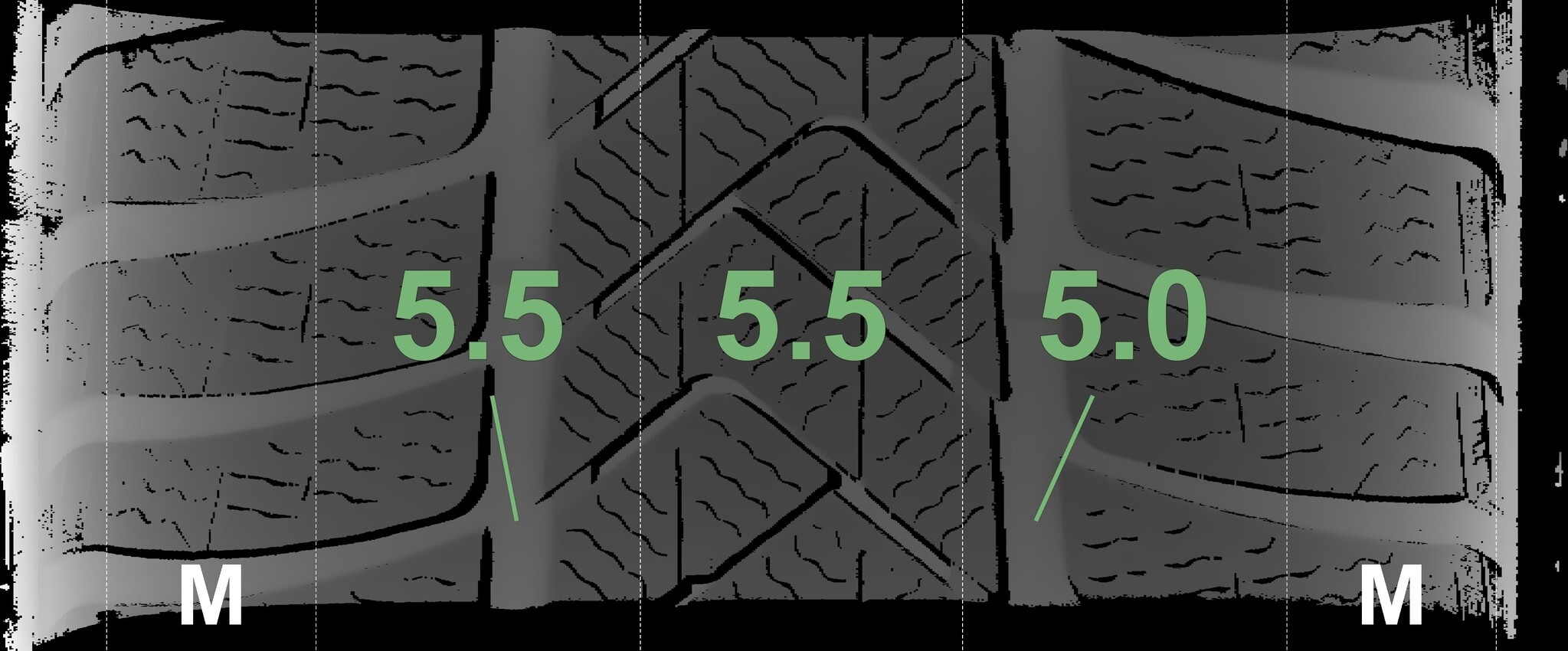 Die gemessenen Profiltiefen und Details zu den Felgen sind oben abgebildet.