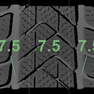 | Zustand | Profiltiefe | DOT | Vorderachse Links | Neu | 7,5 mm | 4022 |