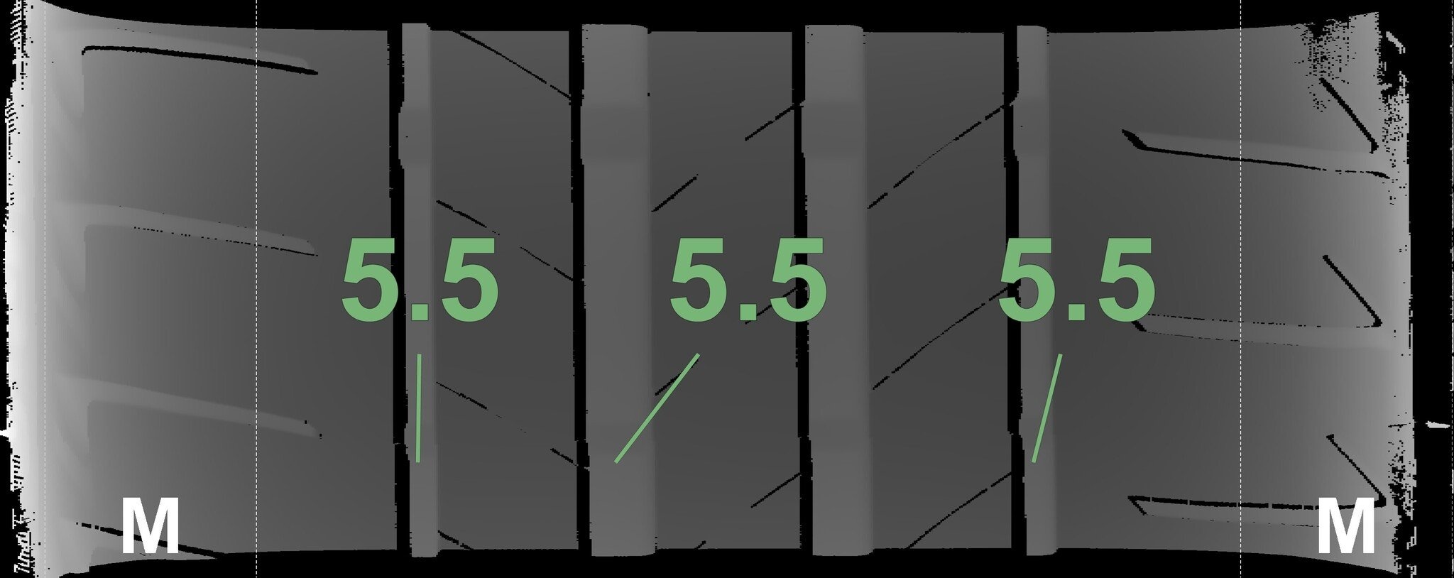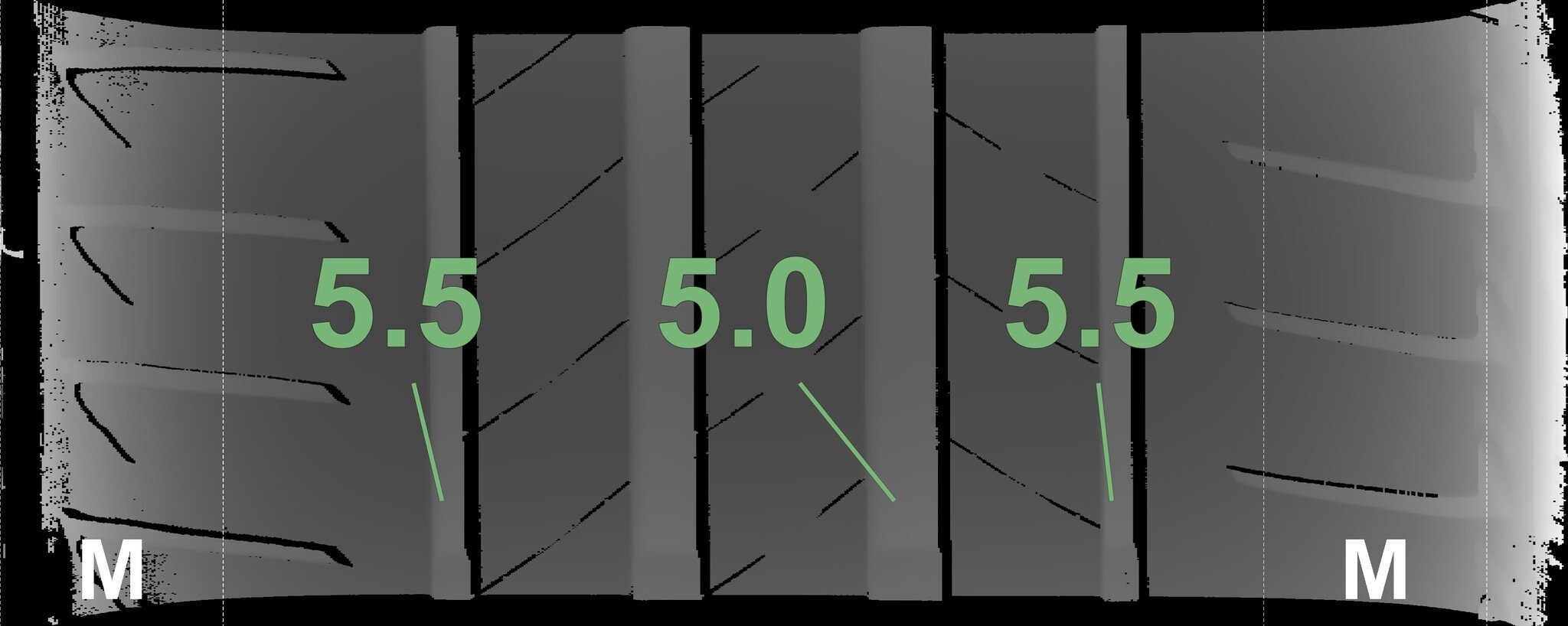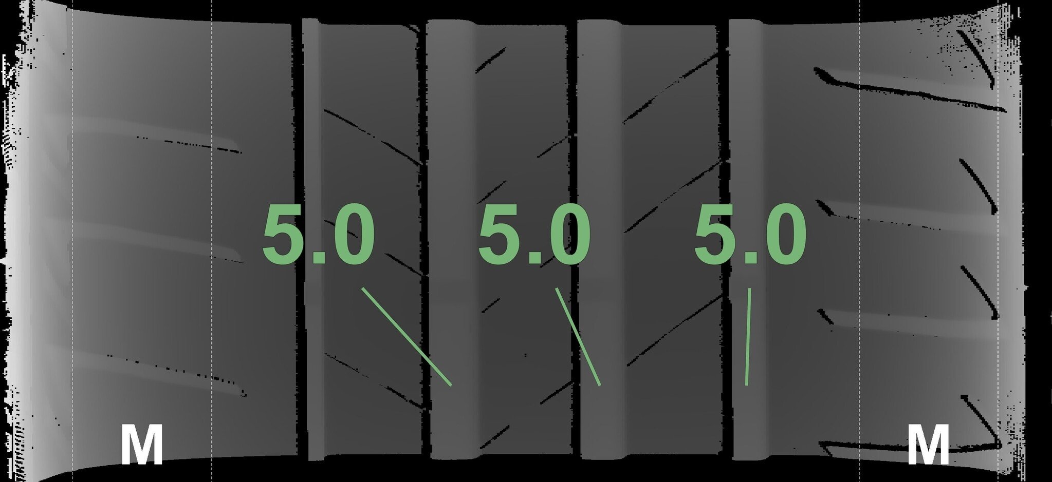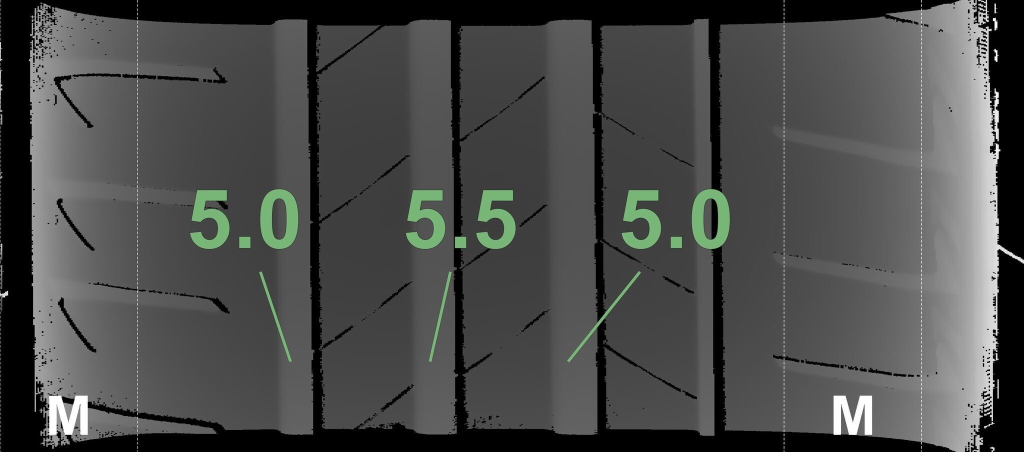 Die gemessenen Profiltiefen und Details zu den Felgen sind oben abgebildet.
