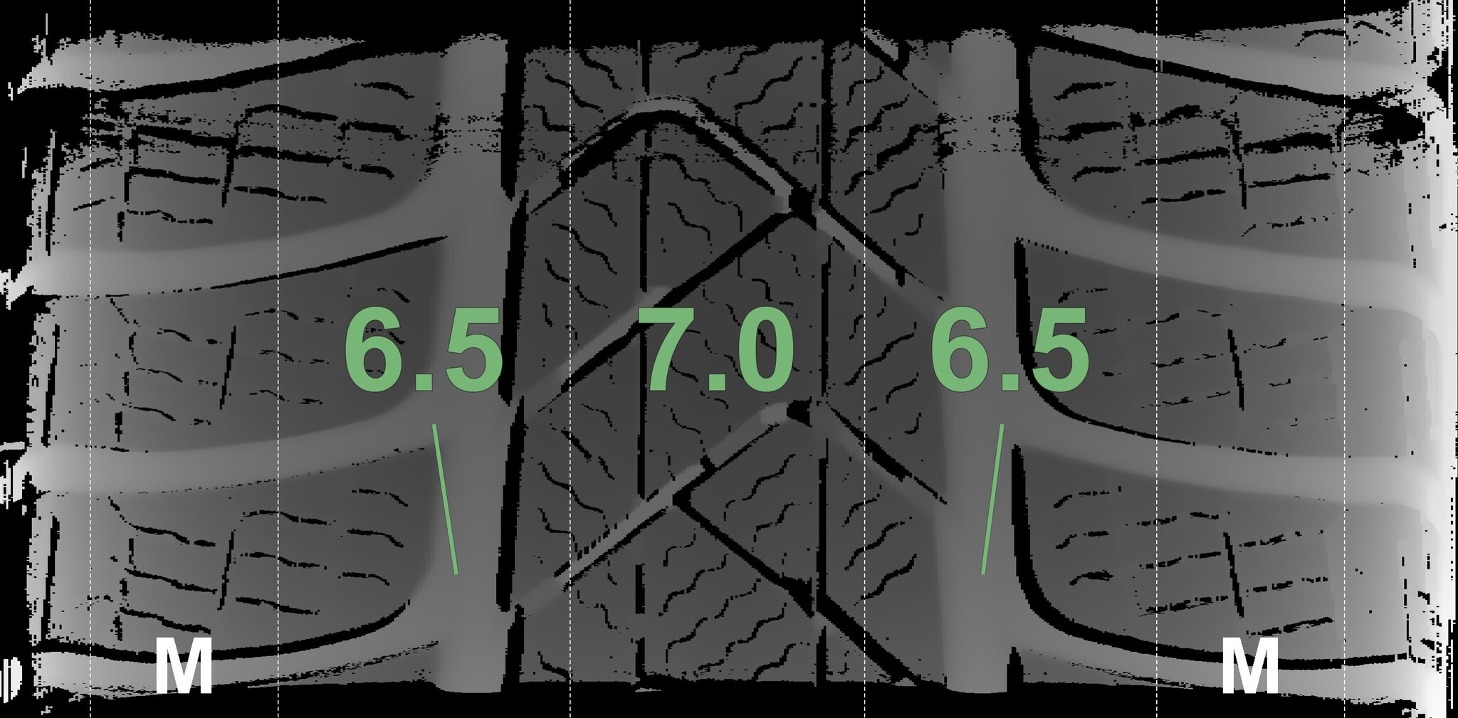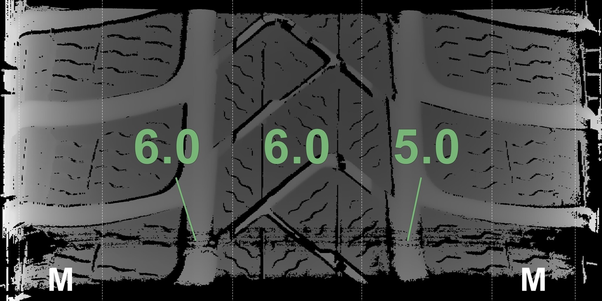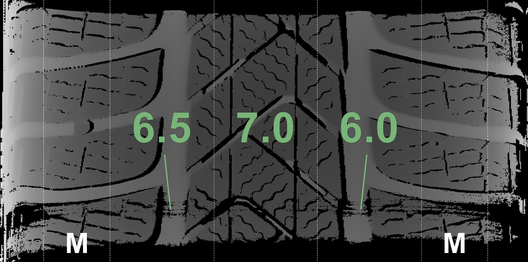 Die gemessenen Profiltiefen und Details zu den Felgen sind oben abgebildet.