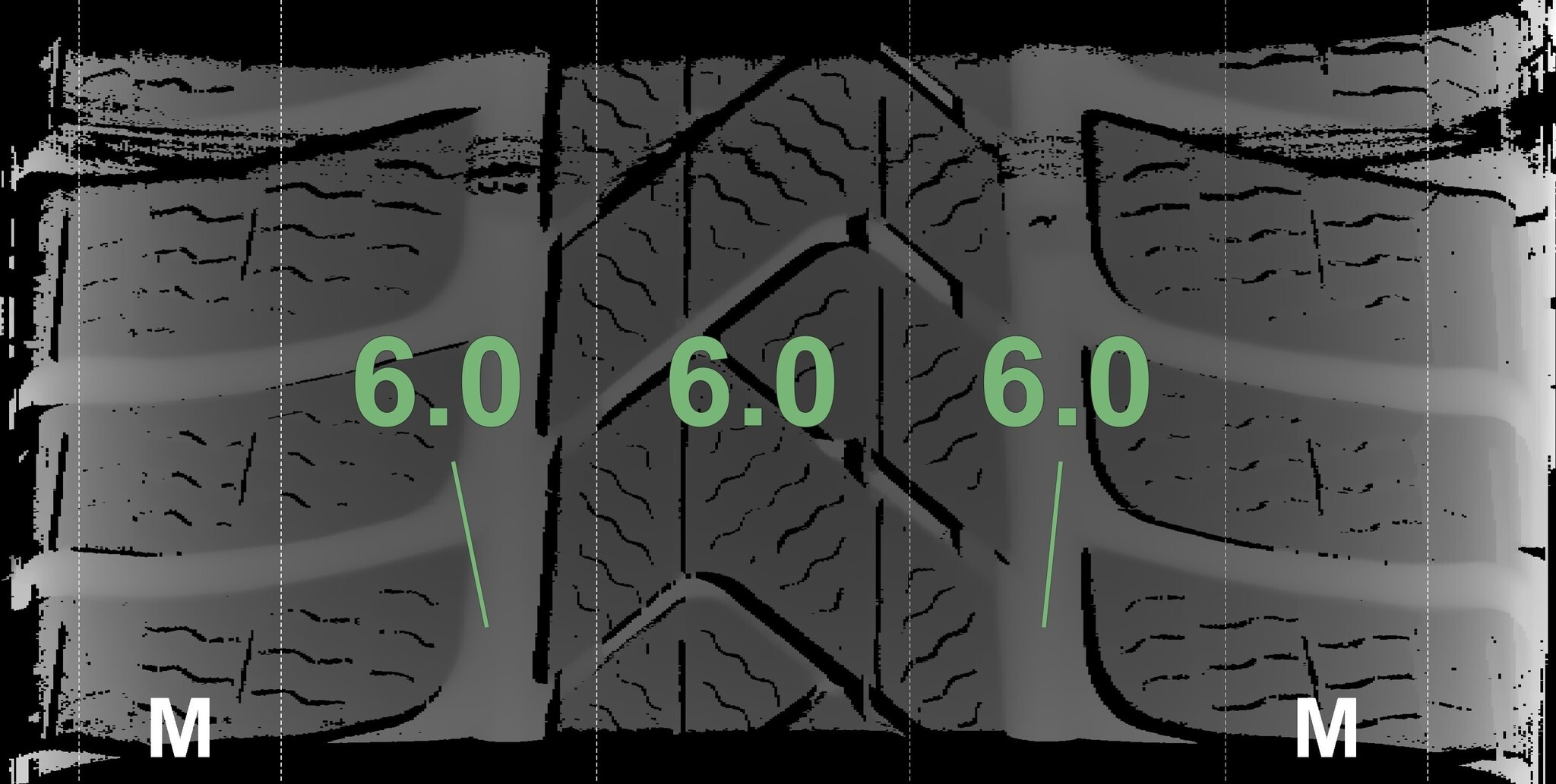 Zustand | Profiltiefe | DOT | Vorderachse Rechts | Gebraucht | 6,0 mm | 4518 |