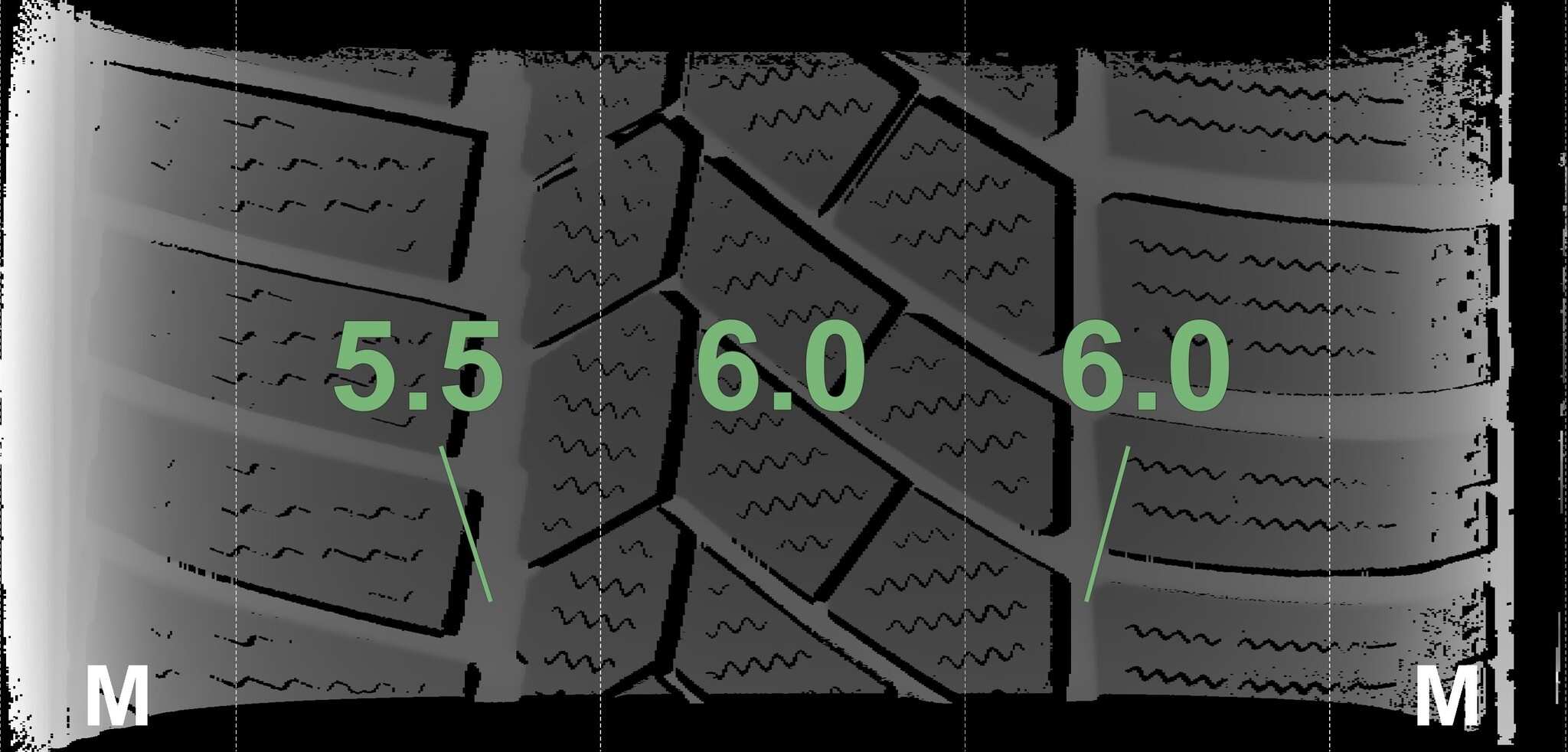 Die gemessenen Profiltiefen und Details zu den Felgen sind oben abgebildet.
