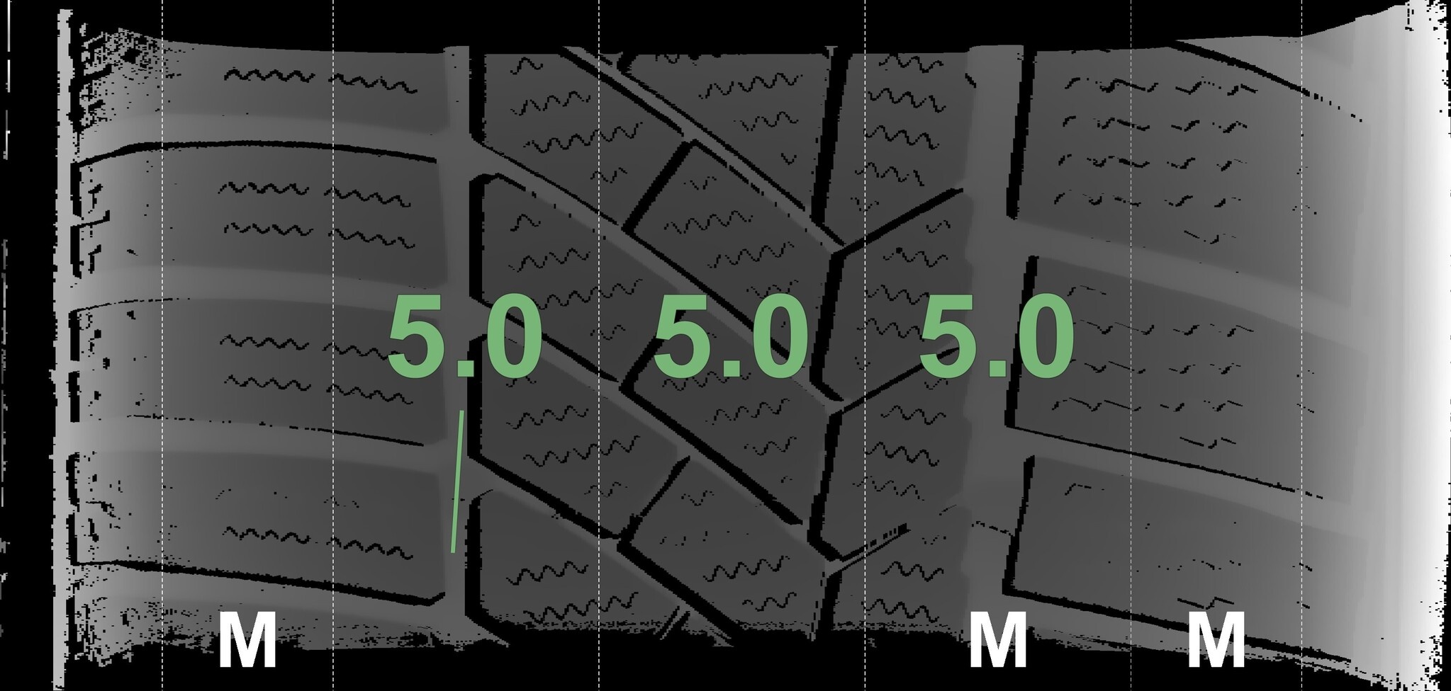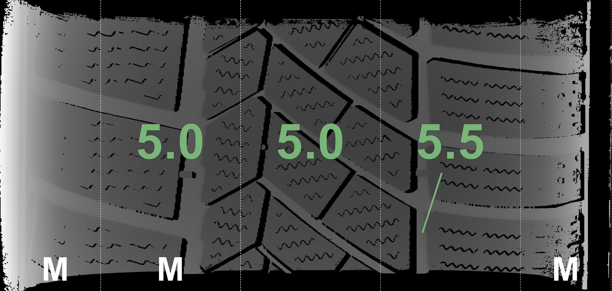 | Zustand | Profiltiefe | DOT | Vorderachse Links | Gebraucht | 5,0 mm | 2519 |
