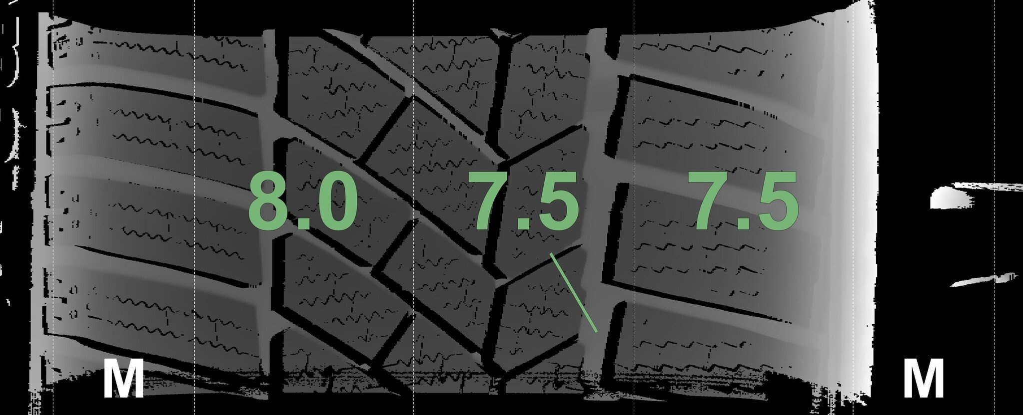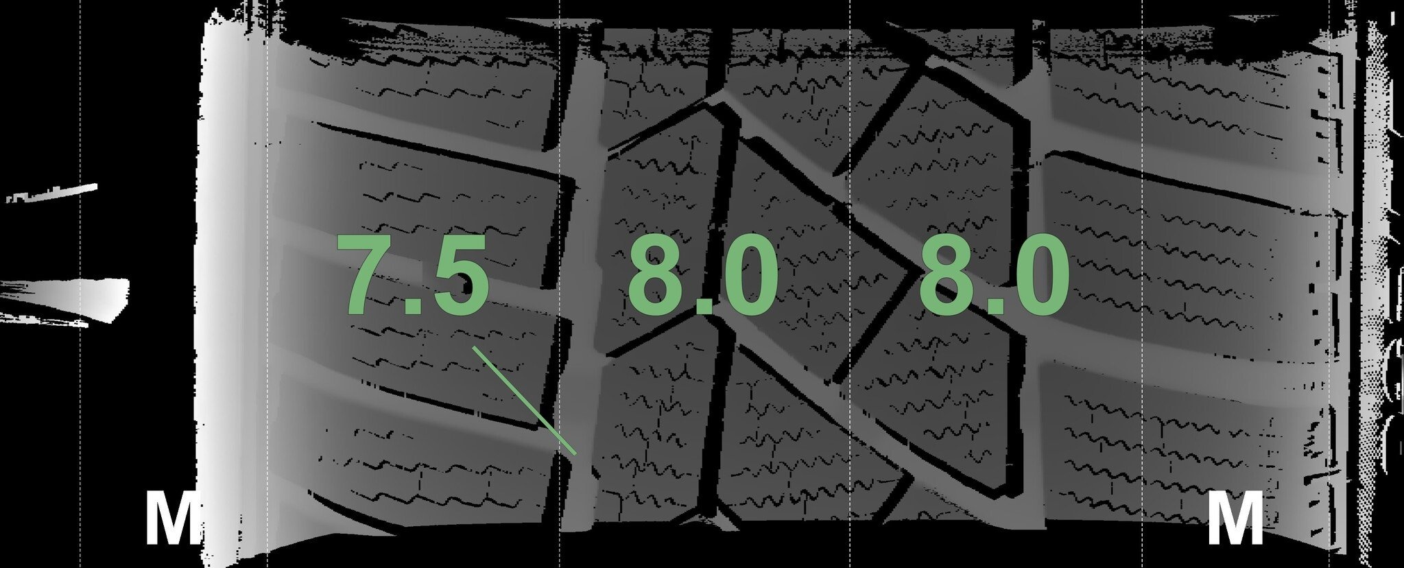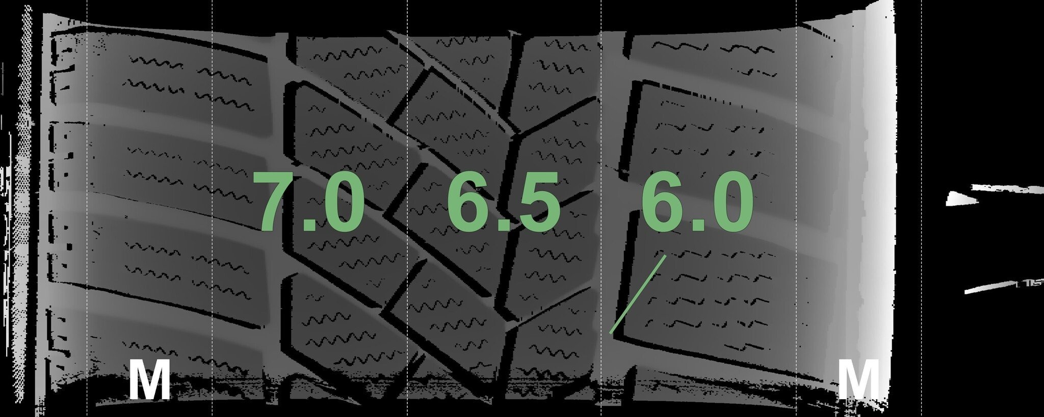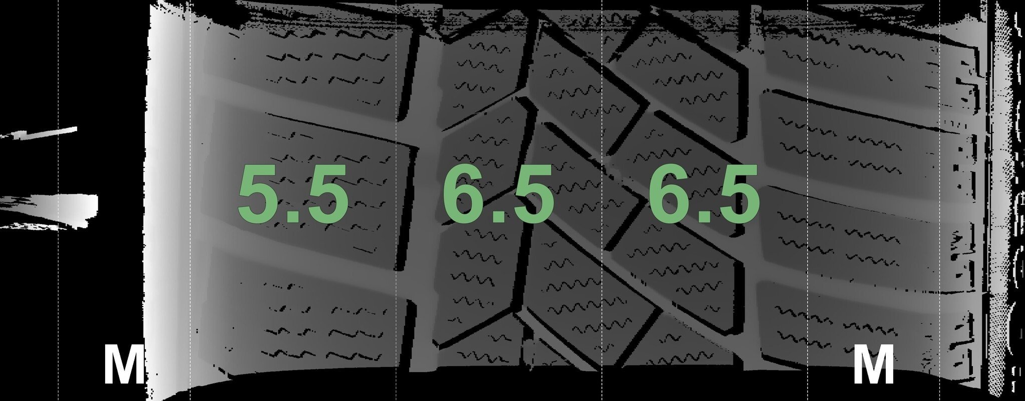 Die gemessenen Profiltiefen und Details zu den Felgen sind oben abgebildet.