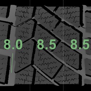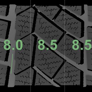 | Zustand | Profiltiefe | DOT | Vorderachse Links | Demo-Noppen noch sichtbar | 8,0 mm | 3919 |
