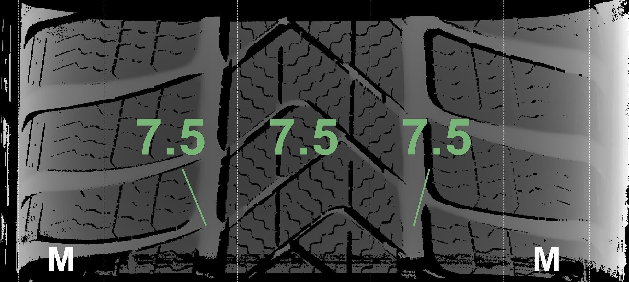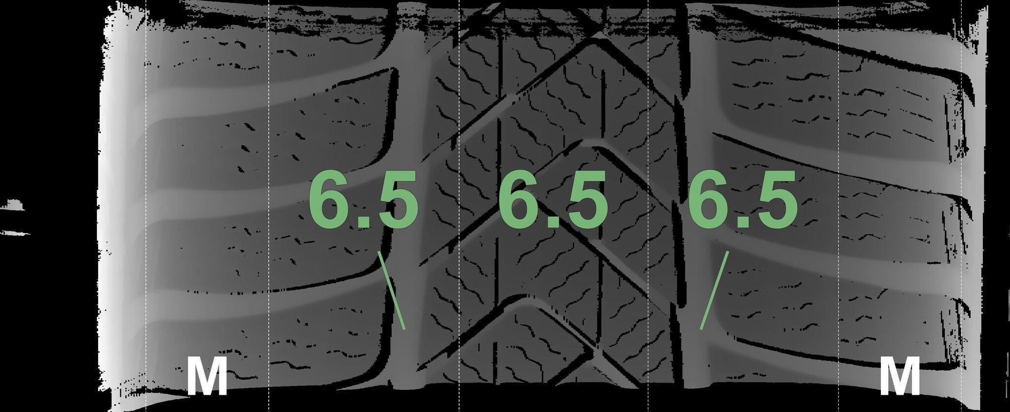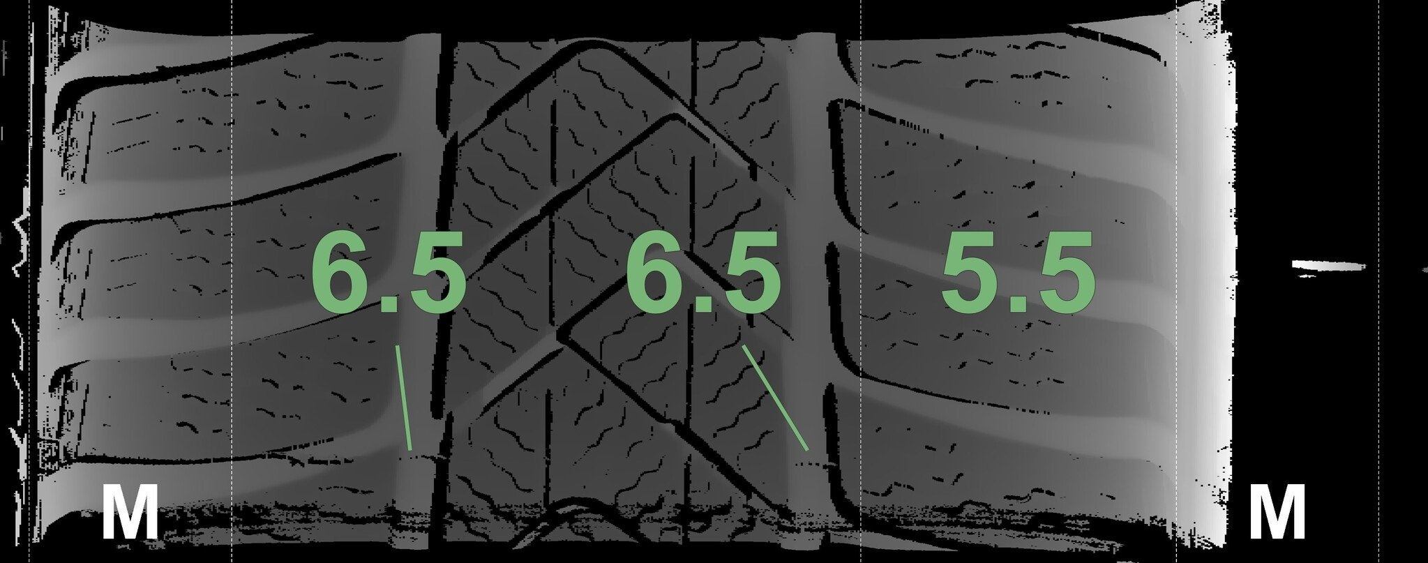 Die gemessenen Profiltiefen und die Details der Felgen sind oben dargestellt.