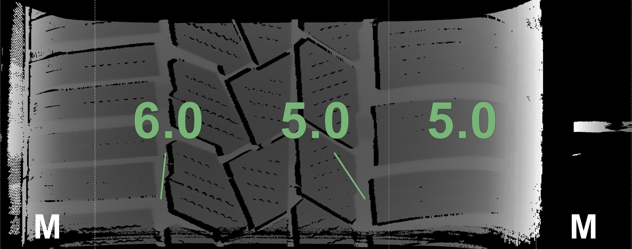 Die gemessenen Profiltiefen und die Details der Felgen sind oben angegeben.