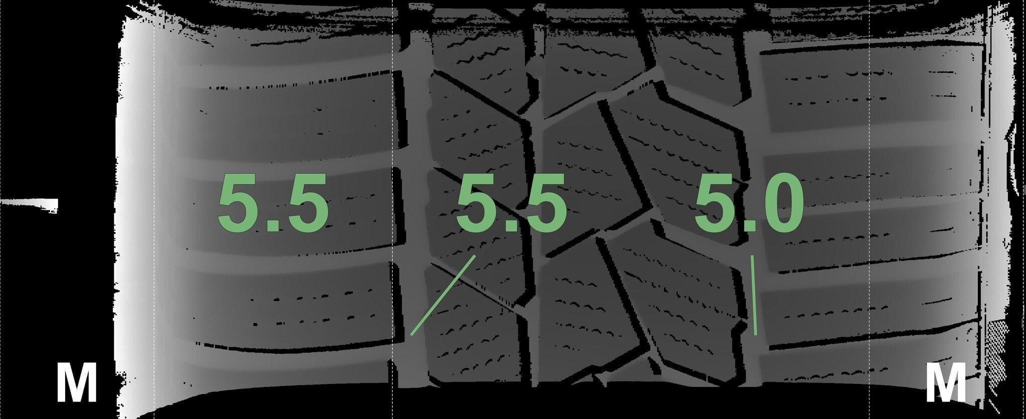 | Zustand | Profiltiefe | DOT | Vorderachse Links | Gebraucht | 5,0 mm | 4223 |