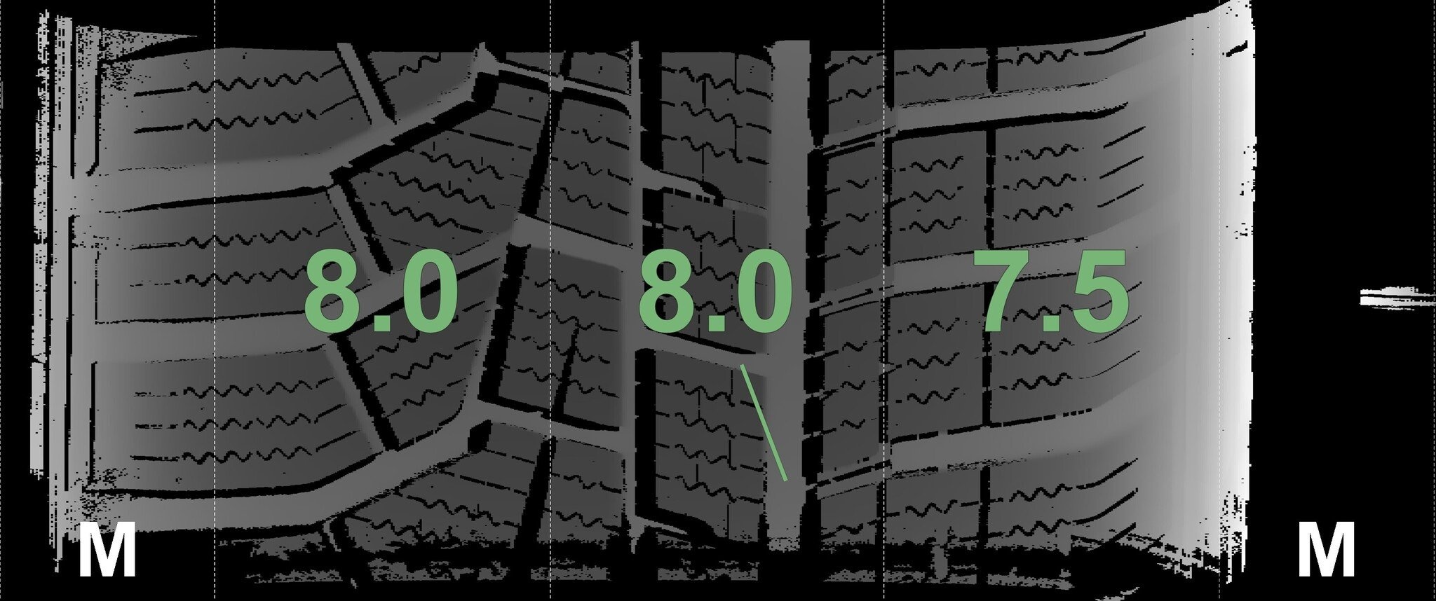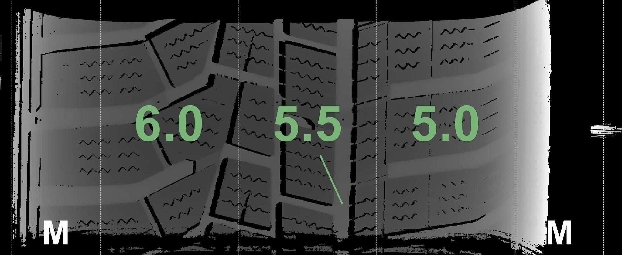 Die gemessenen Profiltiefen und die Details der Felgen sind oben angegeben.