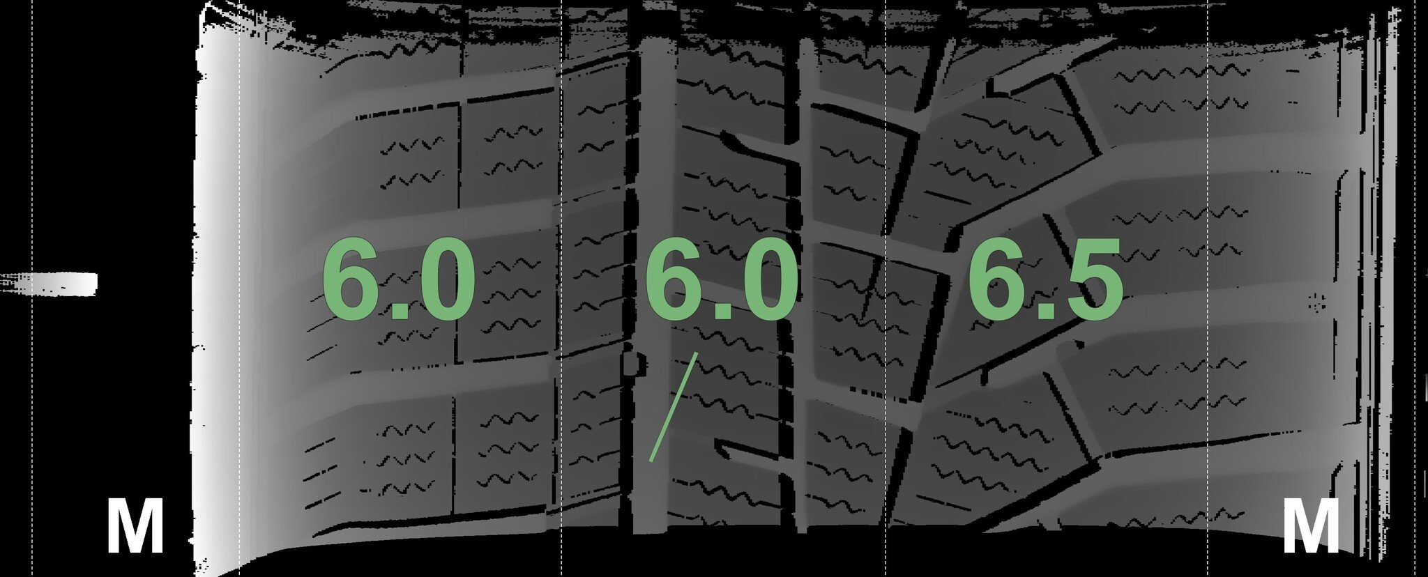 | Zustand | Profiltiefe | DOT | Vorderachse Links | Gebraucht | 6,0 mm | 3624 |