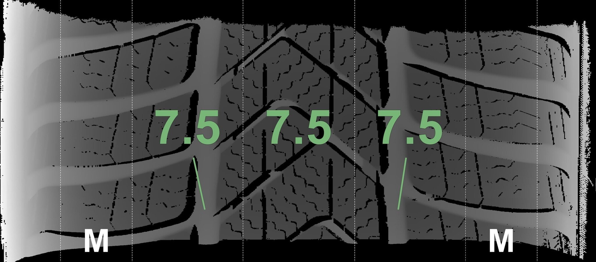 | Zustand | Profiltiefe | DOT | Vorderachse Links | Neu | 7.5 mm | 3822 |