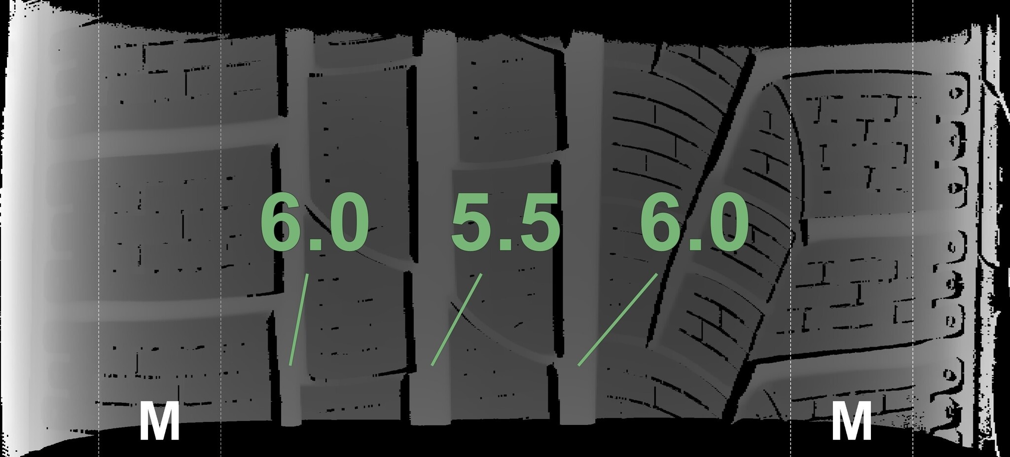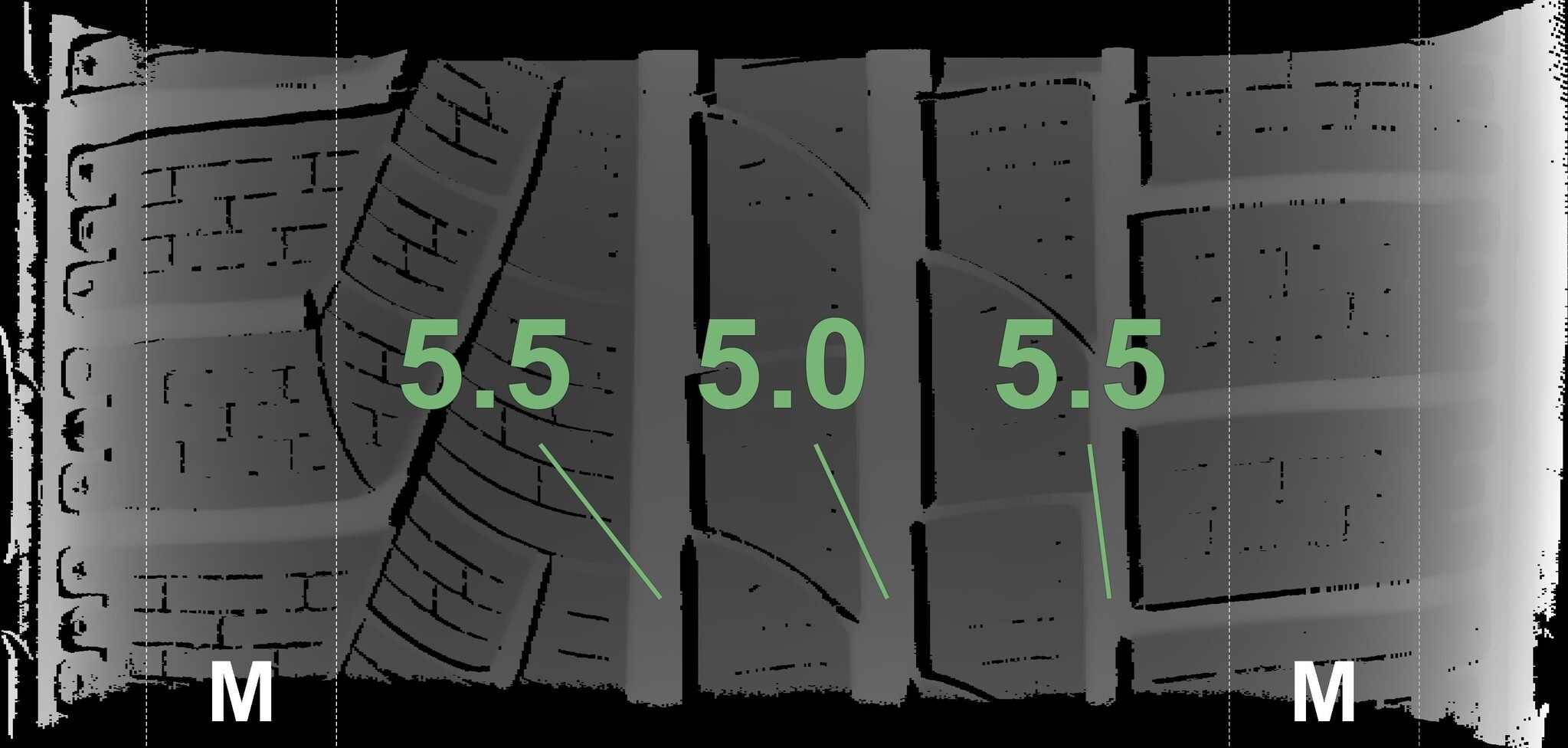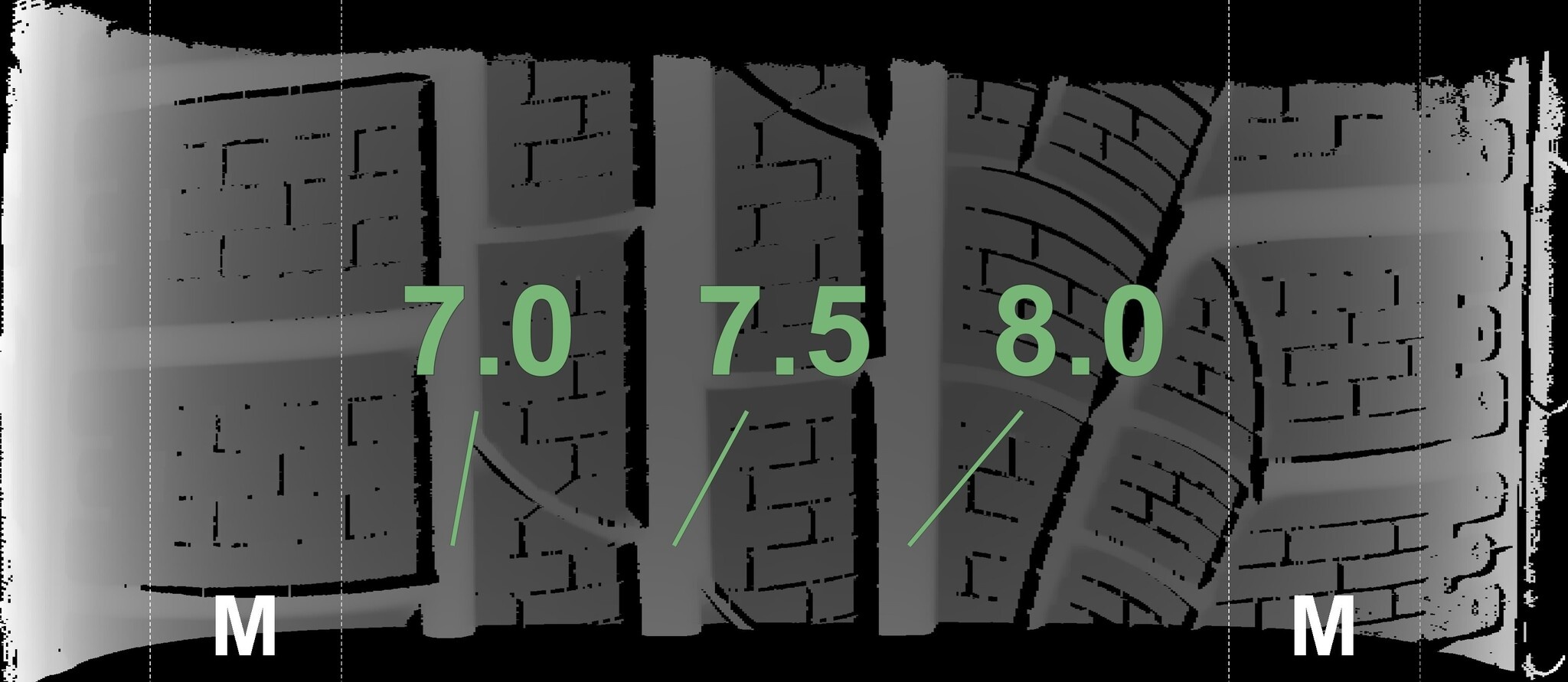 Die gemessenen Profiltiefen und die Details der Felgen sind oben dargestellt.
