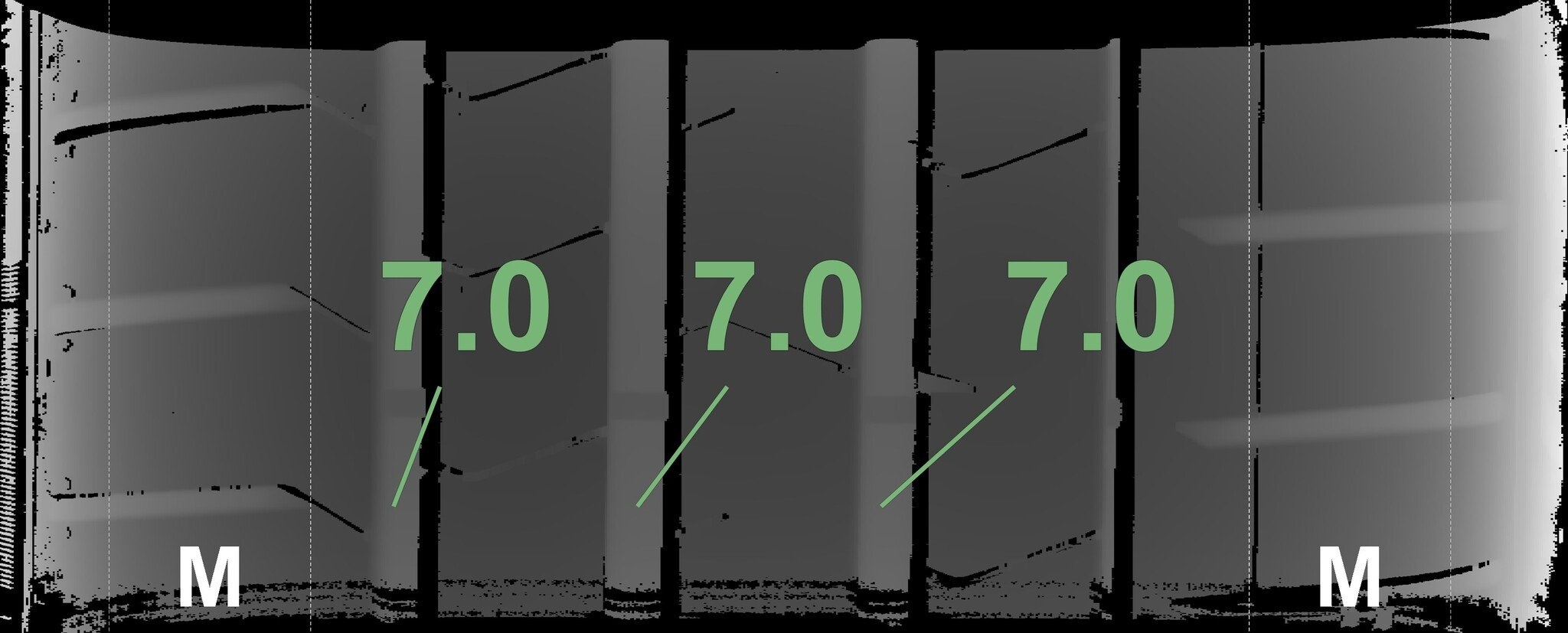 | Zustand | Profiltiefe | DOT | Hinterachse Rechts | Neu | 7.0 mm | 2025 |