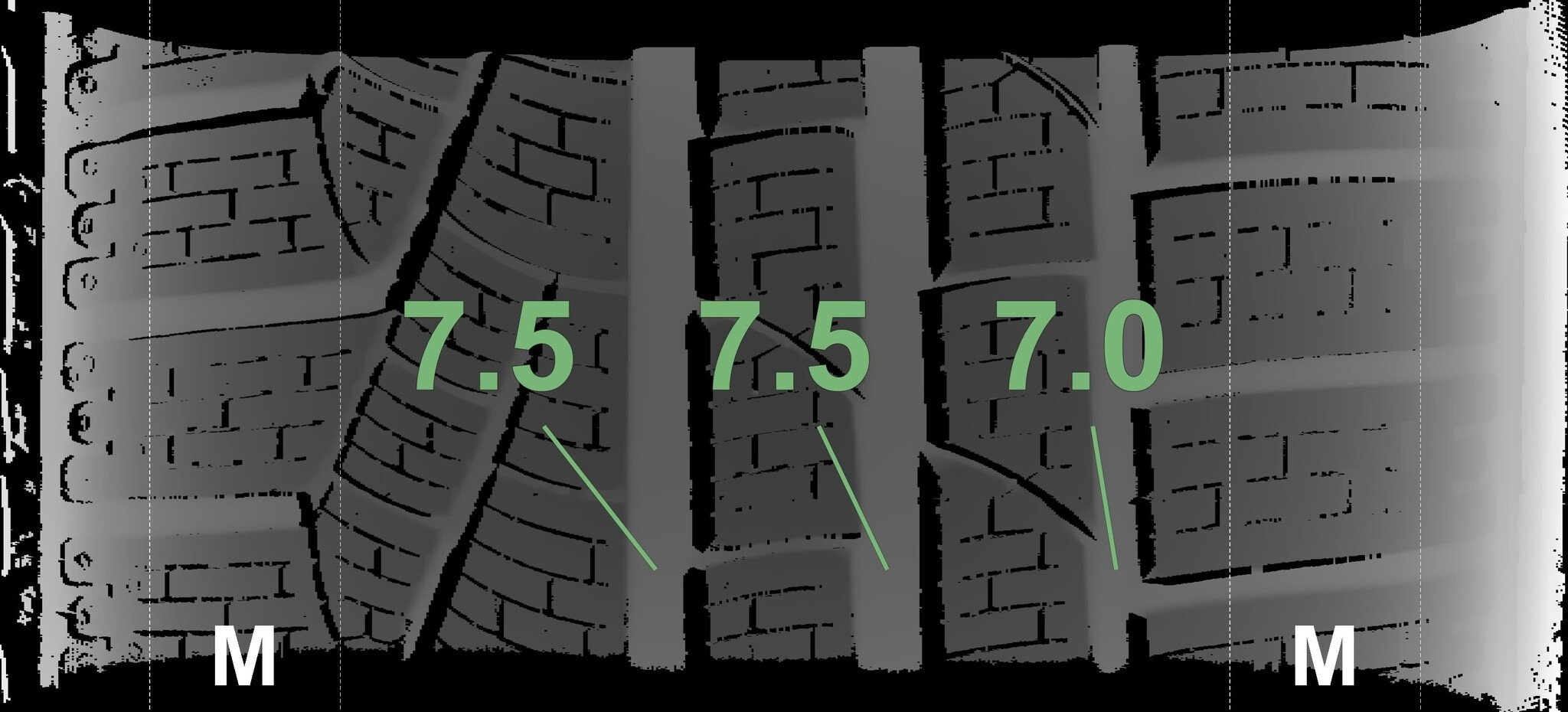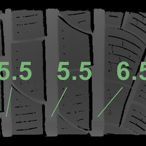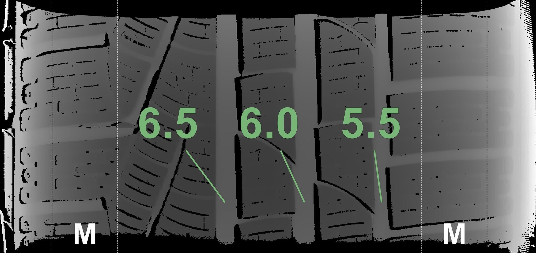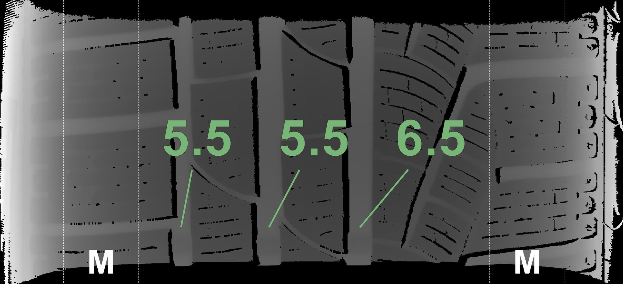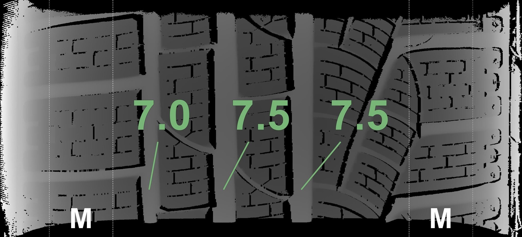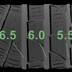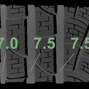 Die gemessenen Profiltiefen und die Details der Felgen sind oben dargestellt.