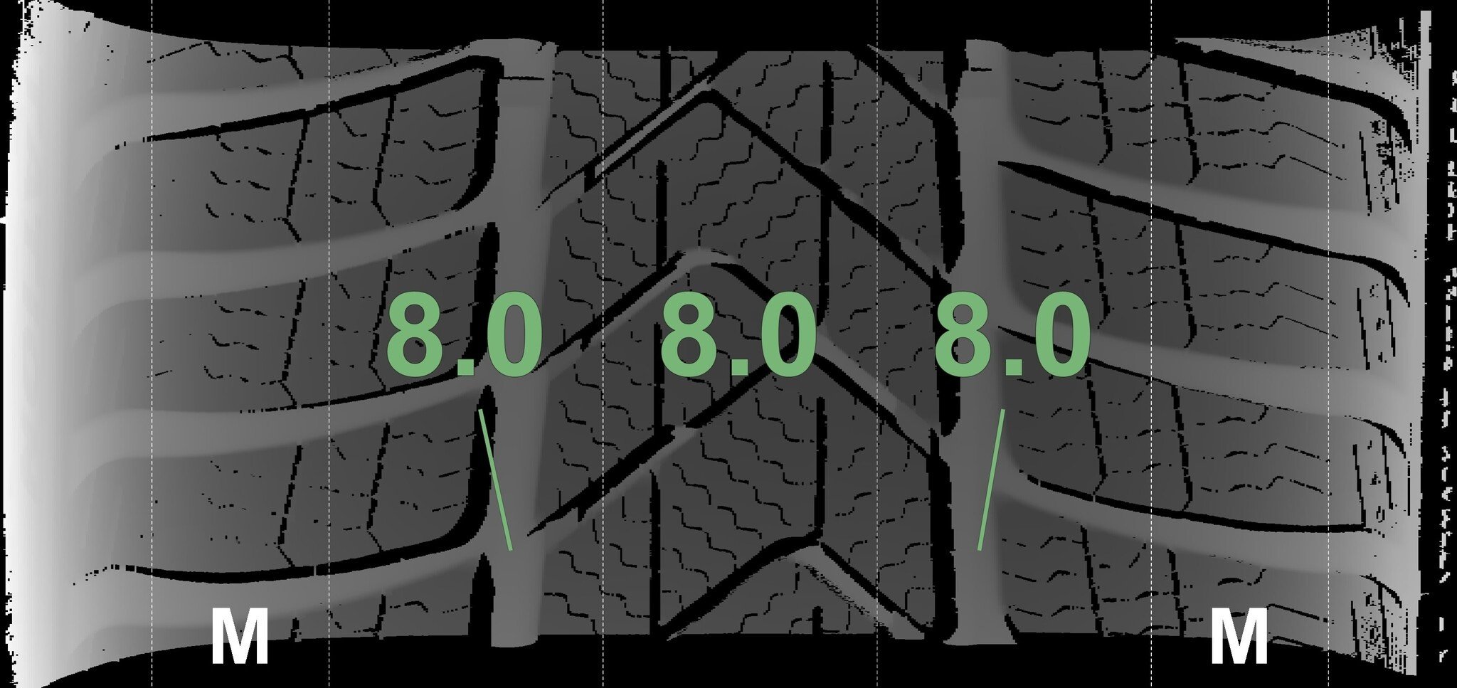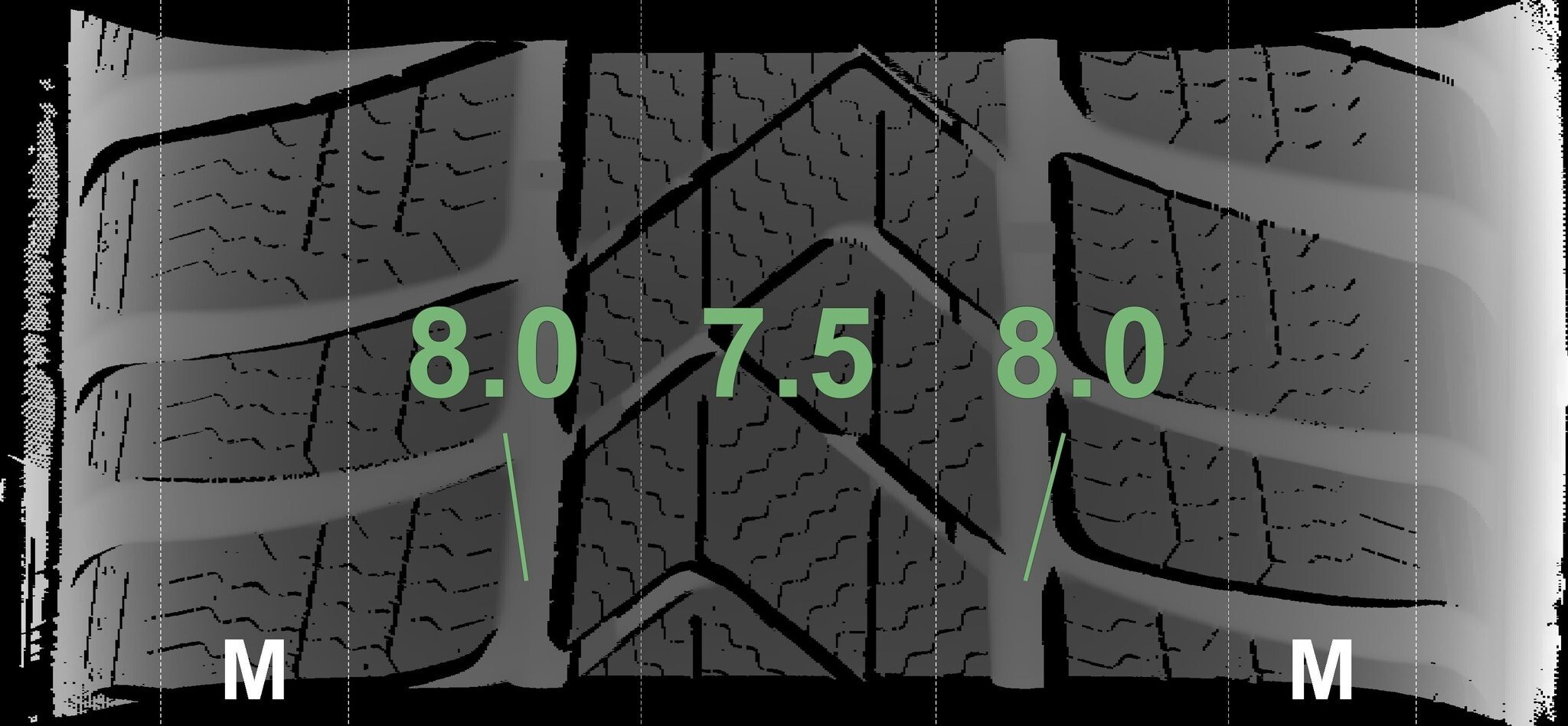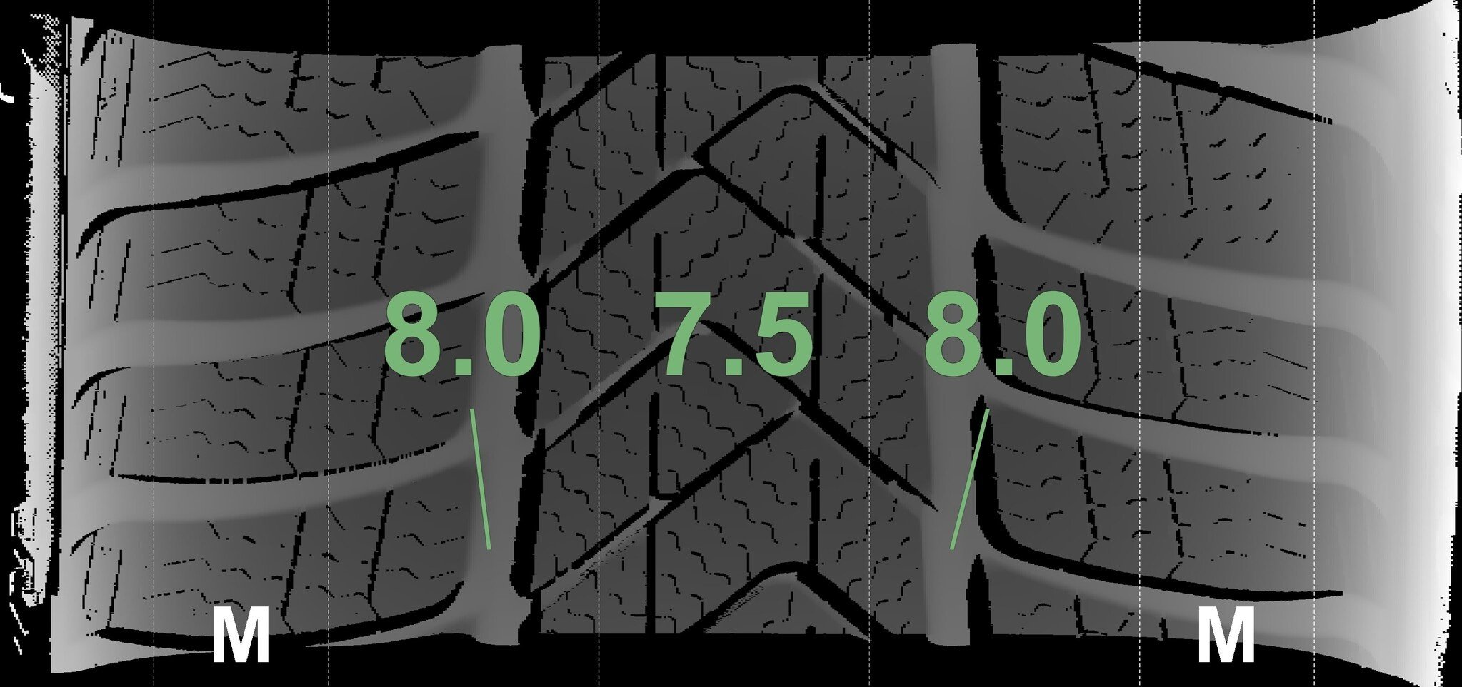 | Zustand | Profiltiefe | DOT | Vorderachse Links | Neu | 8.0 mm | 4625 |