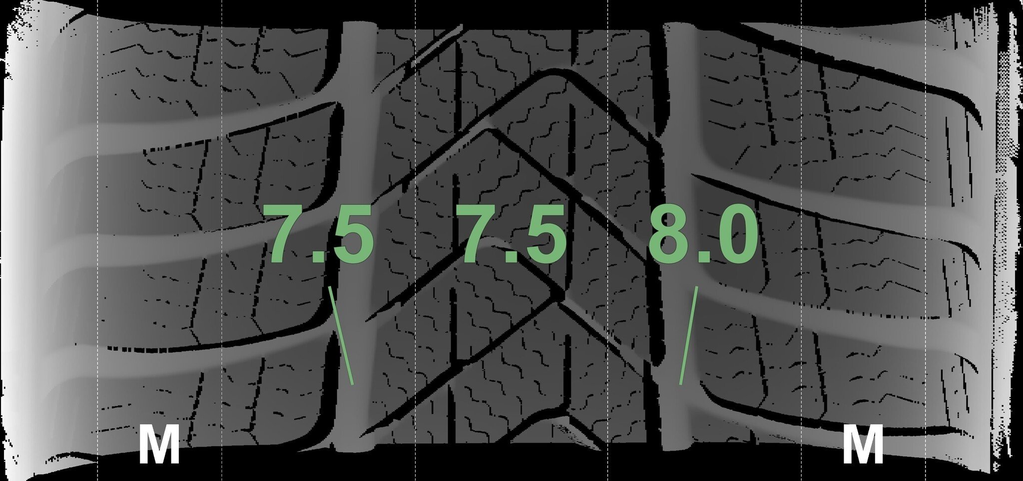 Die gemessenen Profiltiefen und die Details der Felgen sind oben dargestellt.