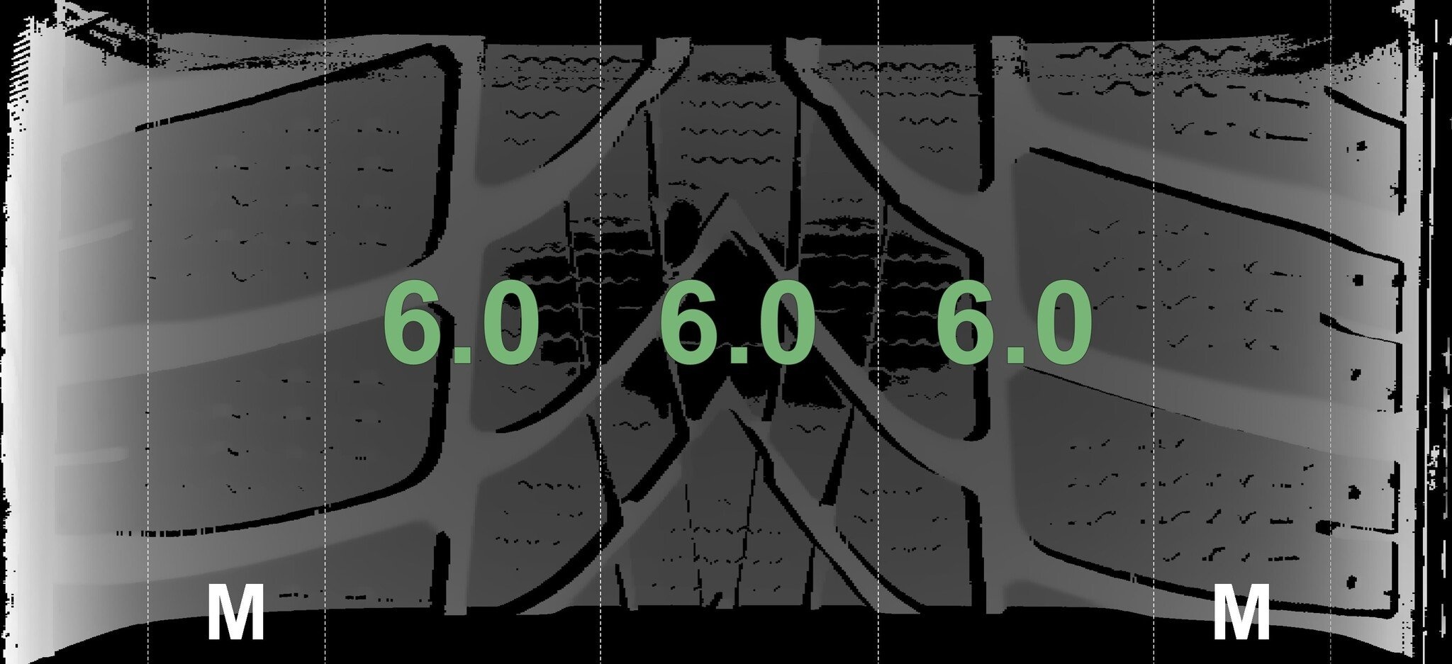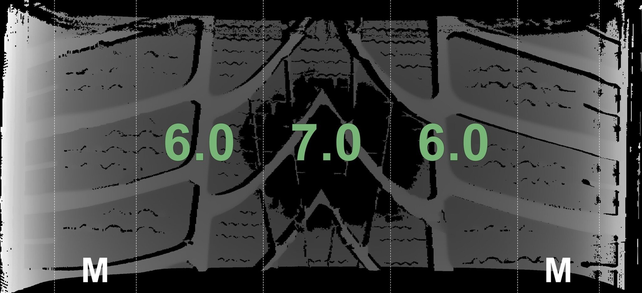 | Zustand | Profiltiefe | DOT | Vorderachse Links | Gebraucht | 6,0 mm | 2418 |