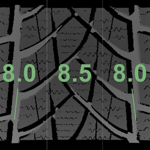 | Zustand | Profiltiefe | DOT | Vorderachse Links | Neu | 8,0 mm | 3818 |