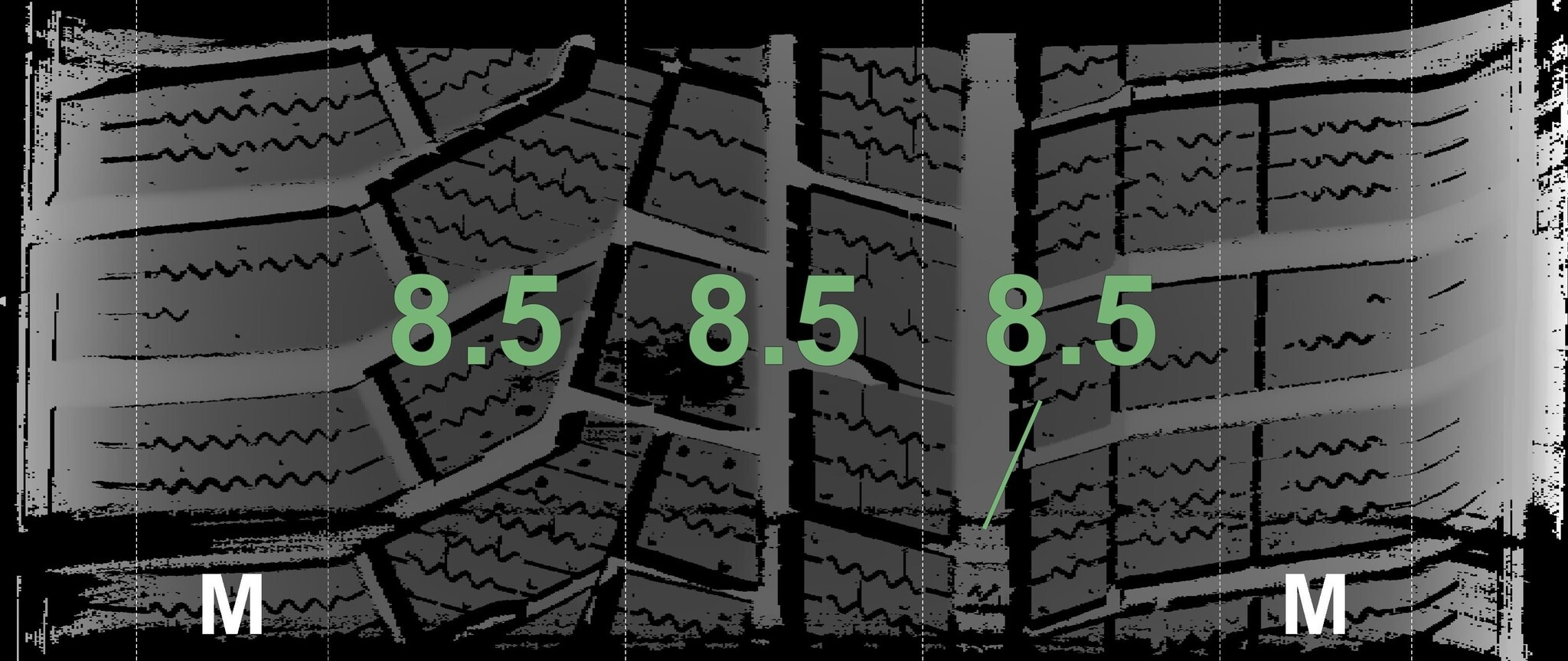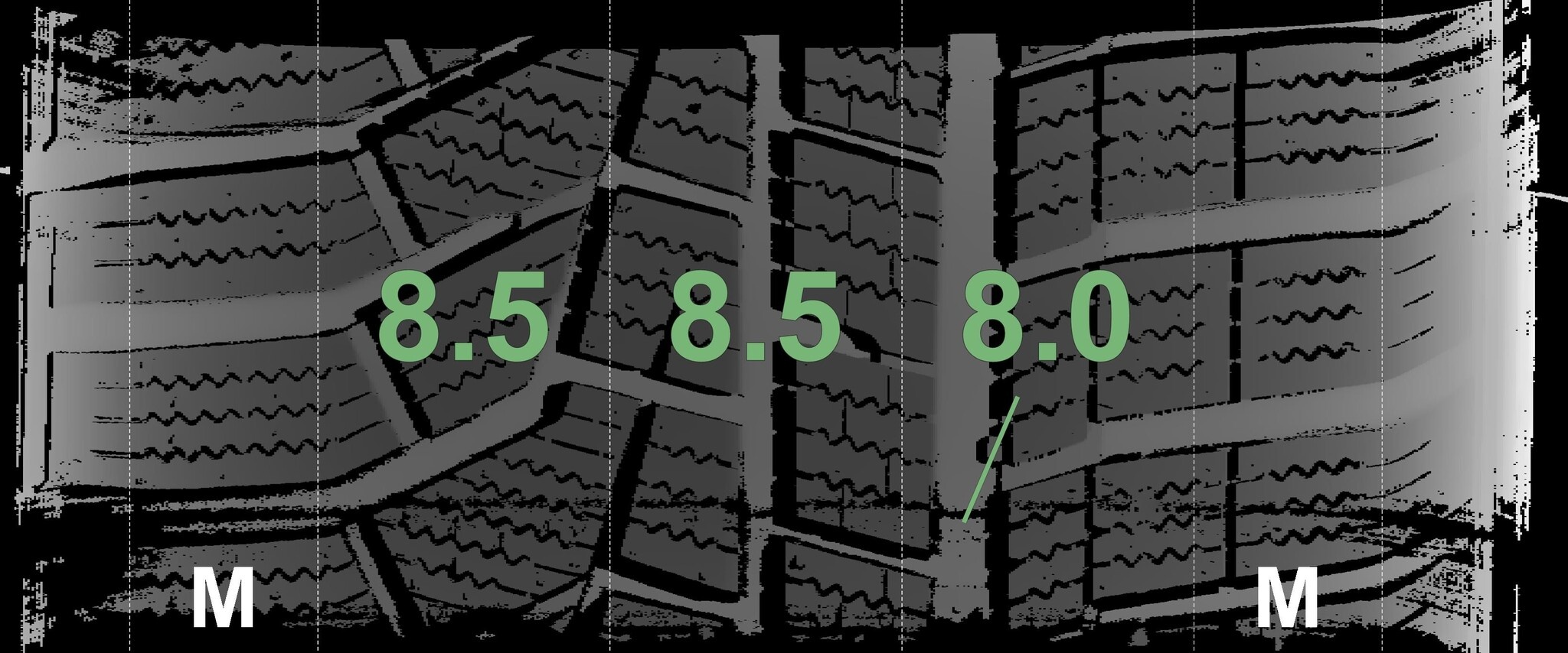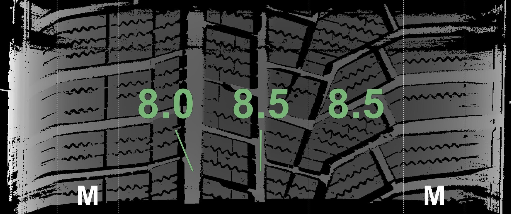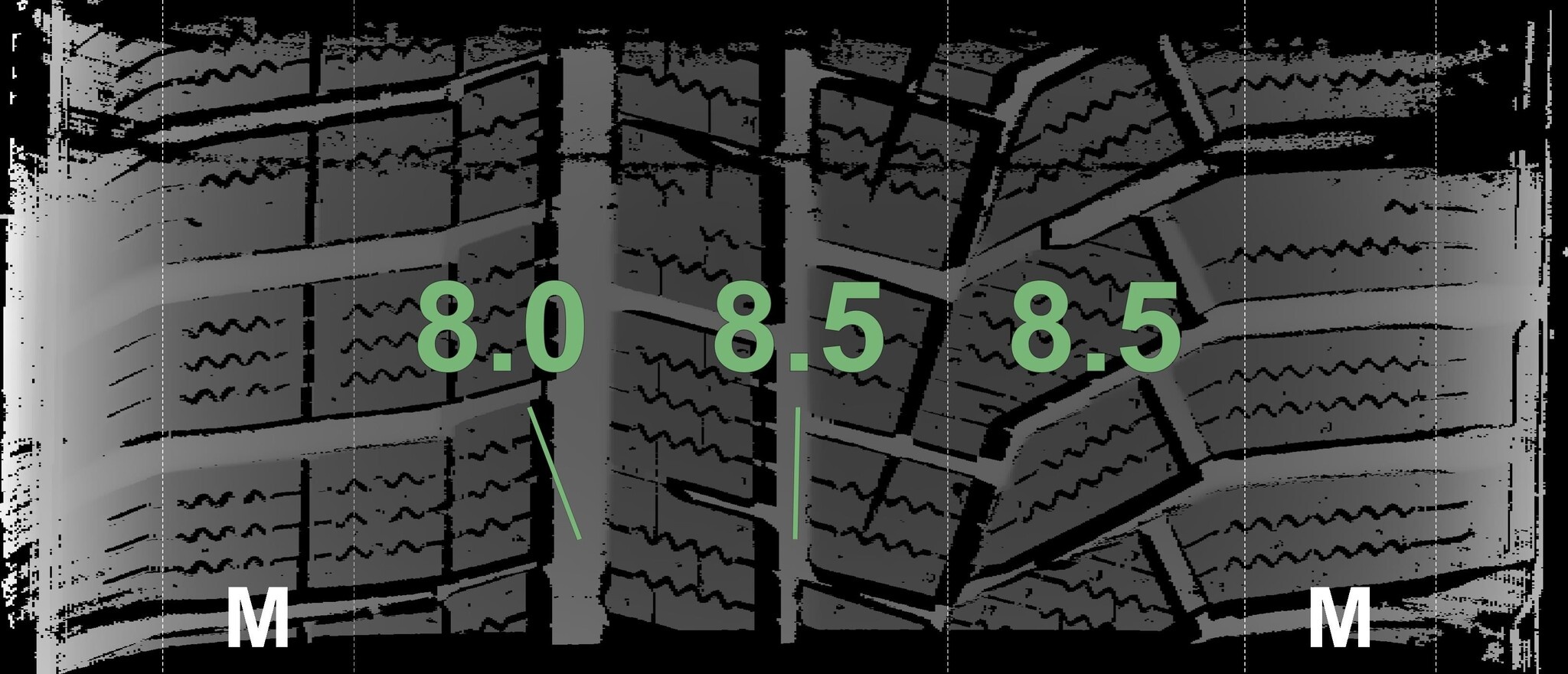 Die gemessenen Profiltiefen und Details zu den Felgen sind oben abgebildet.