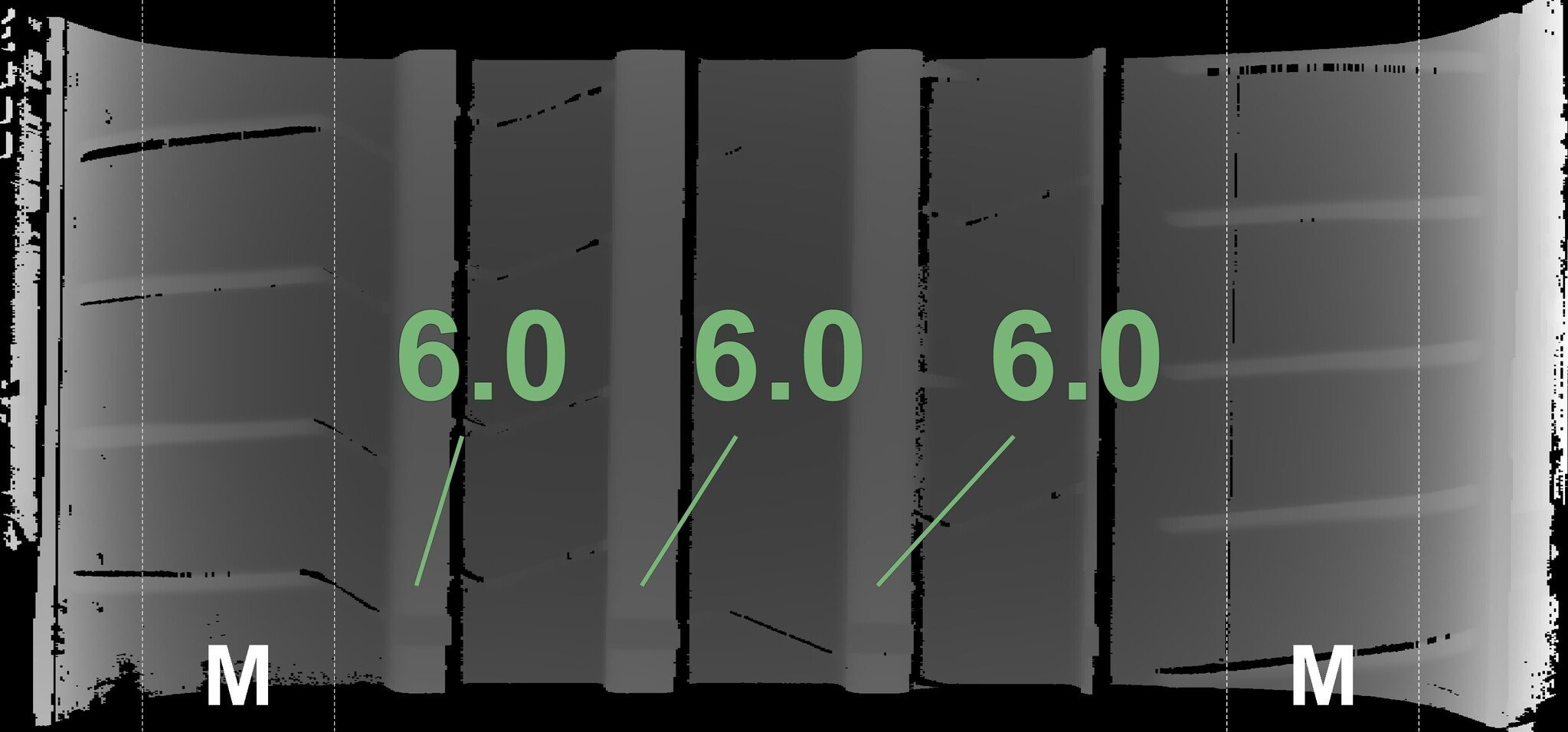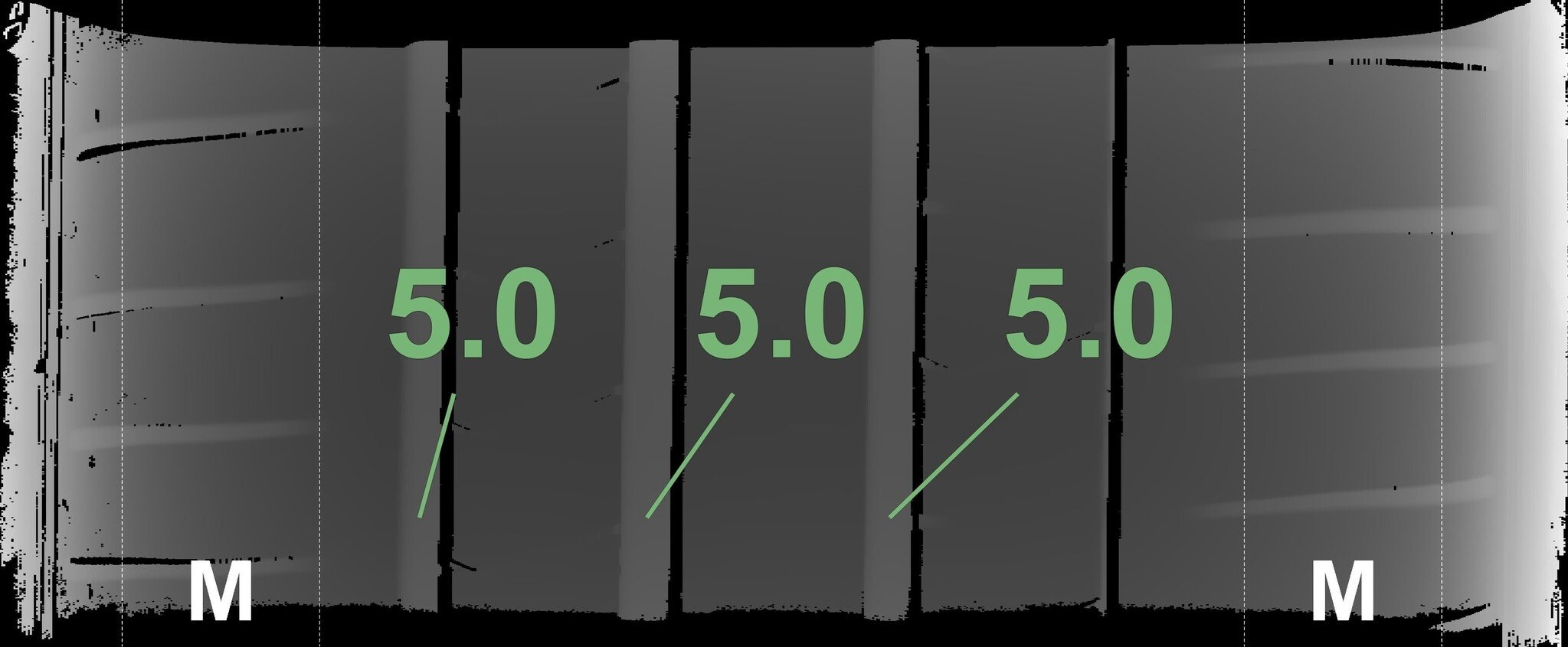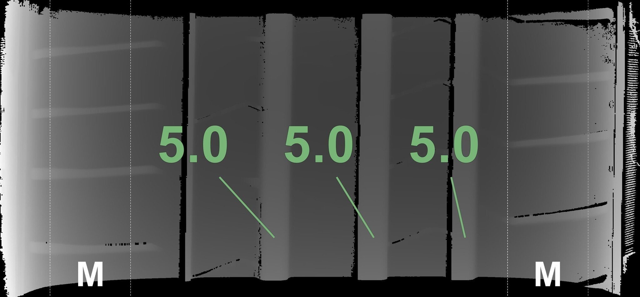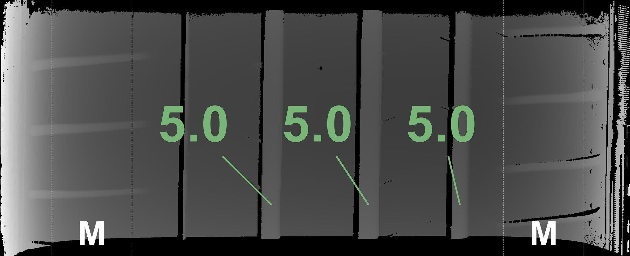 Die gemessenen Profiltiefen und die Details der Felgen sind oben dargestellt.