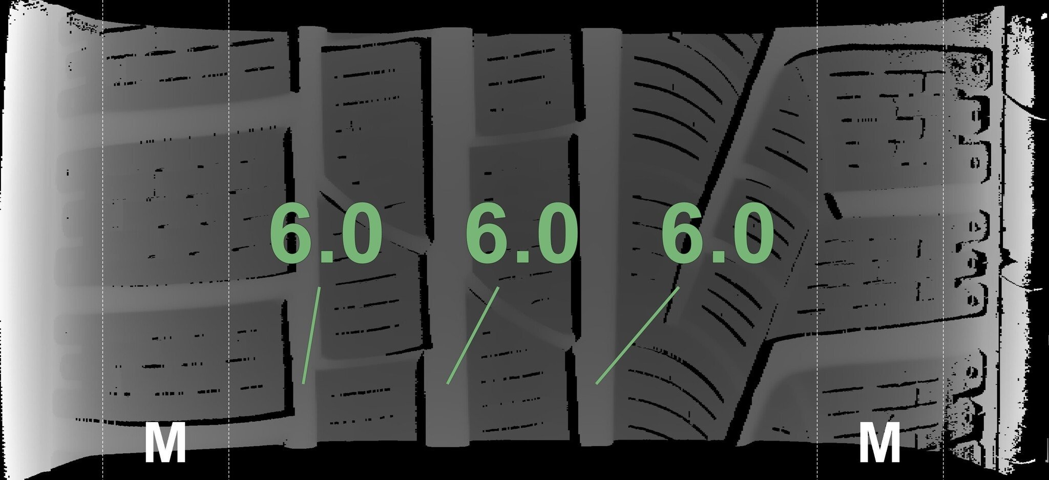 | Zustand | Profiltiefe | DOT | Vorderachse Links | Gebraucht | 6.0 mm | 3219 |