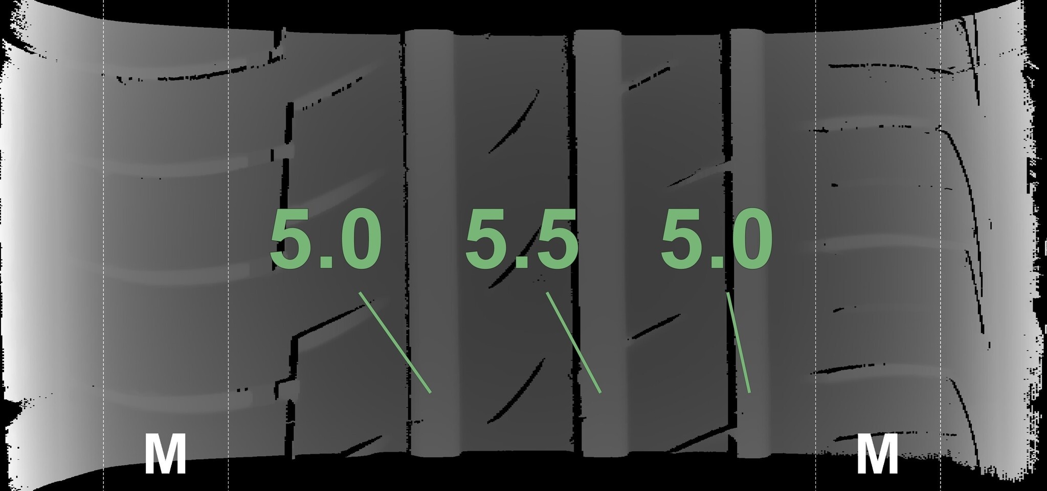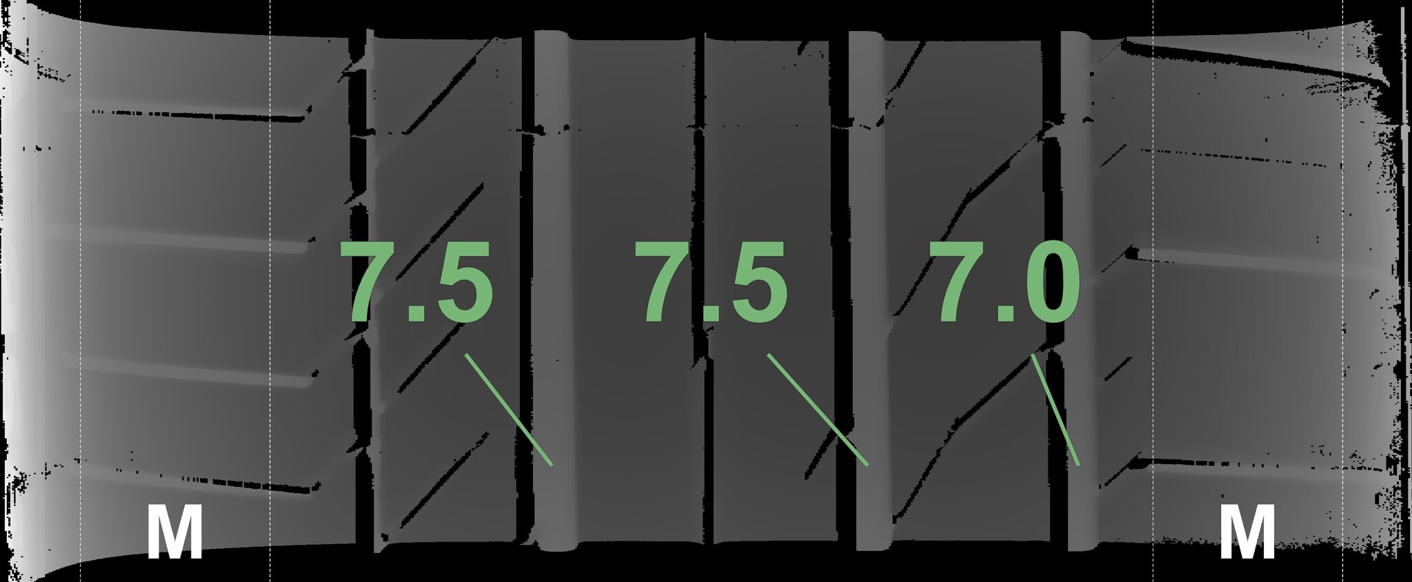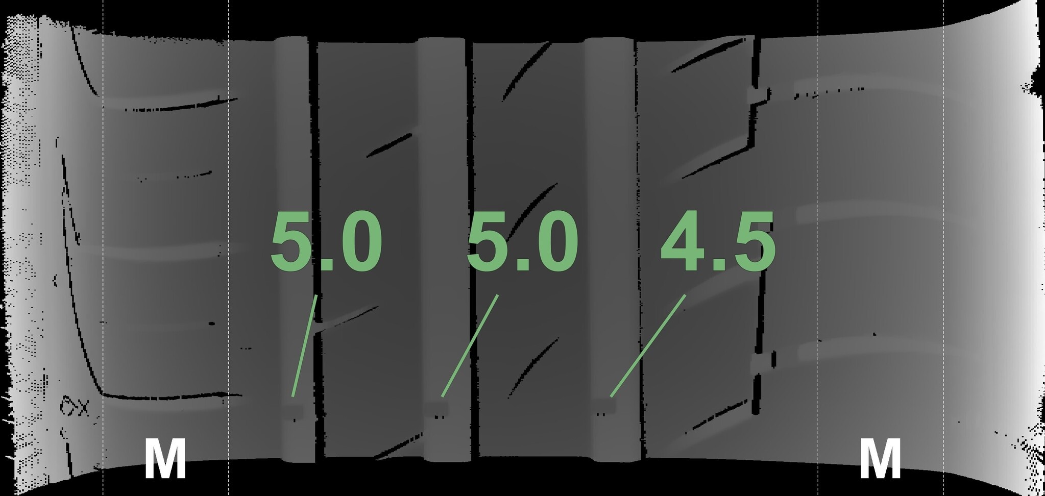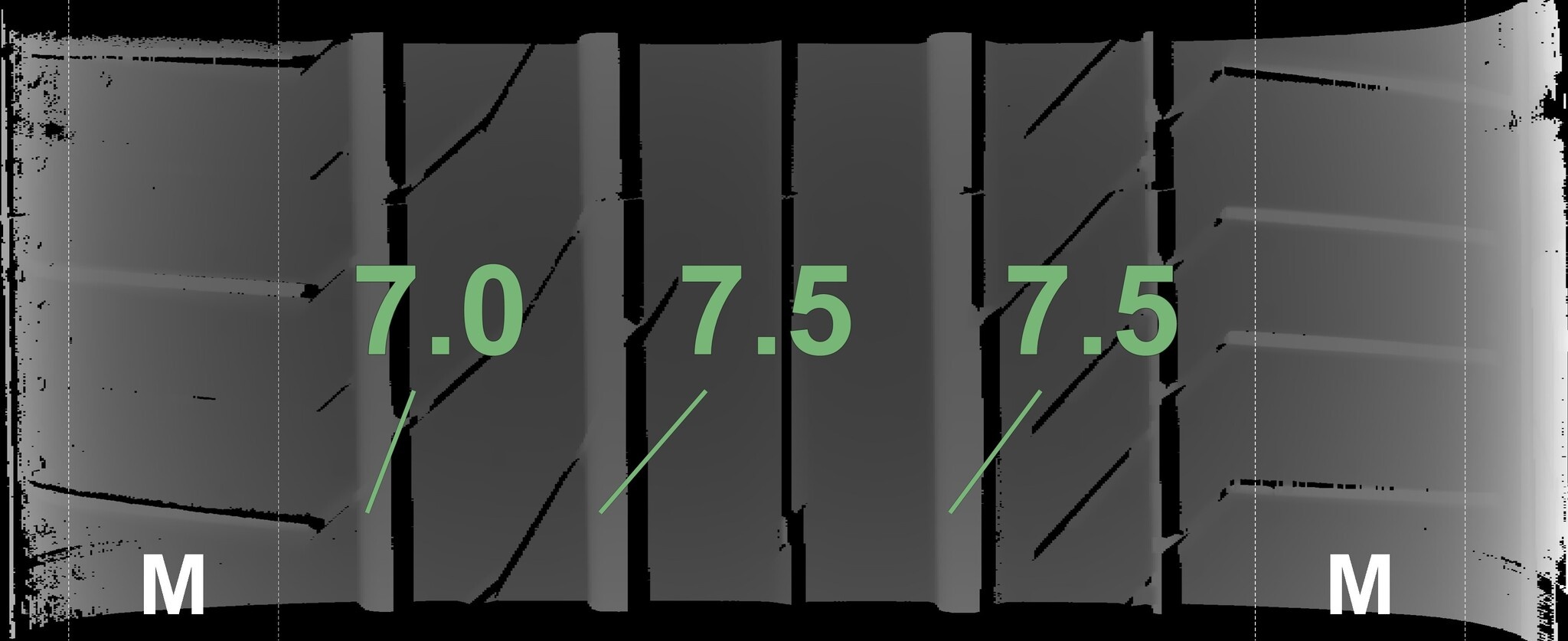 Die gemessenen Profiltiefen und Details zu den Felgen sind oben abgebildet.