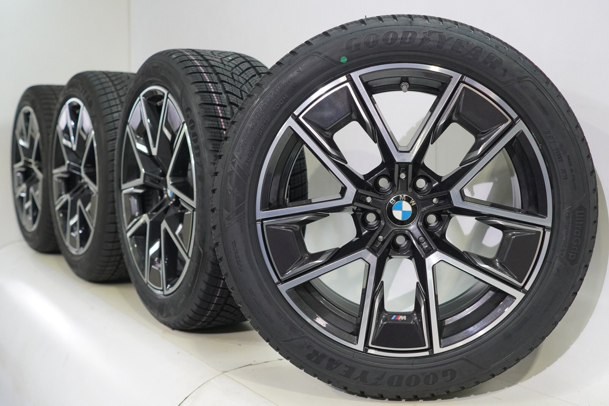 Originaler Radsatz von BMW, Styling 858M, 18 Zoll Felgen mit Goodyear ULTRAGRIP PERFORMANCE + Winterkompletträder. Diese Felgen sind Original-Felgen der Marke BMW und geeignet für: BMW 4 er i4 G26.
