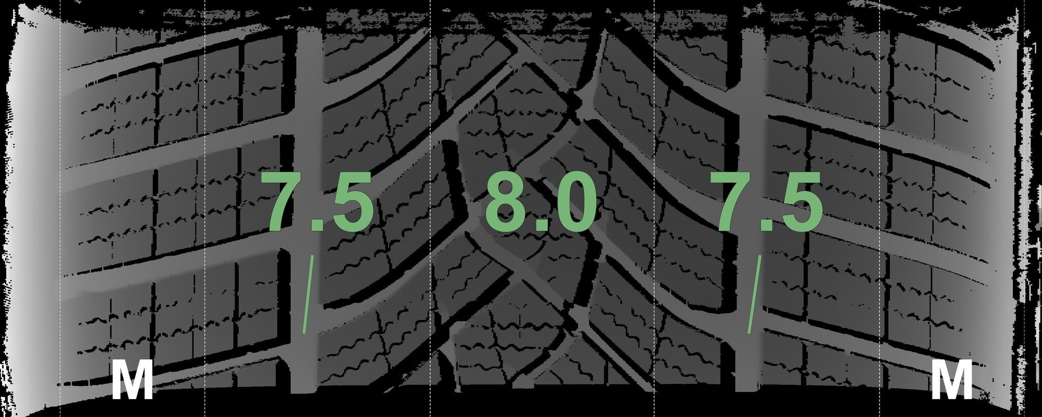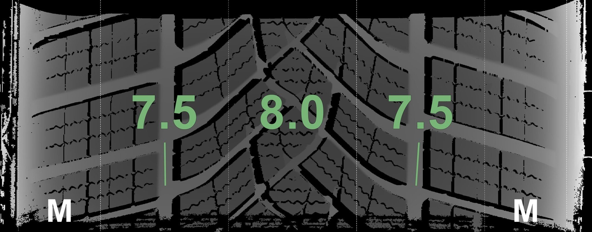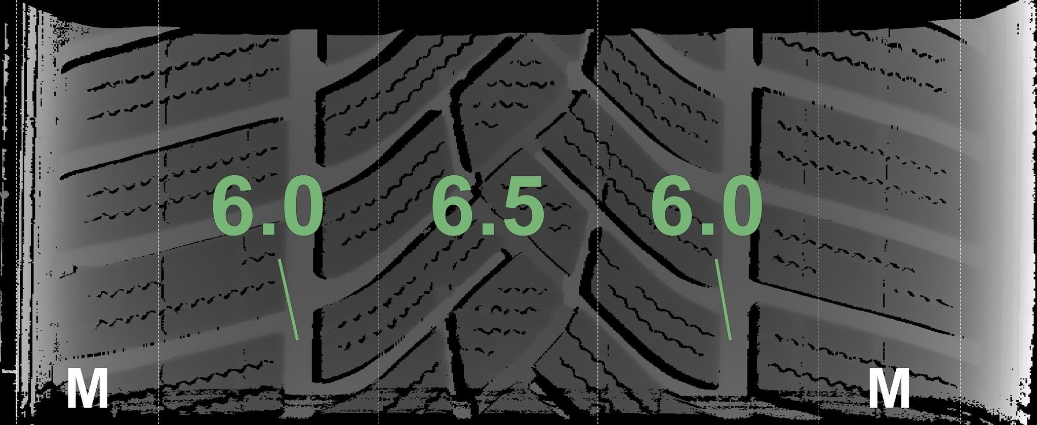 Die gemessenen Profiltiefen und die Details der Felgen sind oben angezeigt.