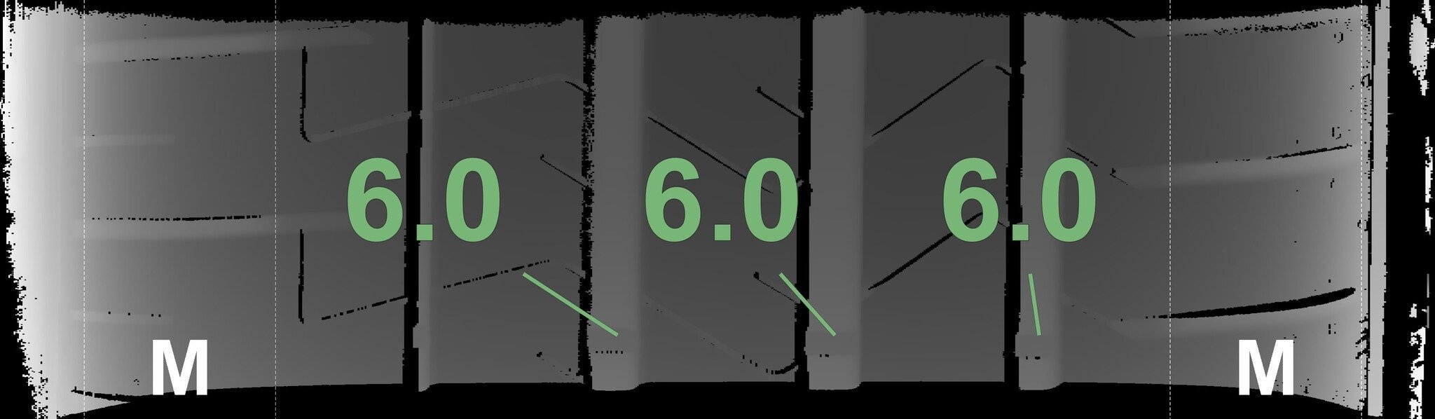 | Zustand | Profiltiefe | DOT | Hinterachse Links | Demo-Noppen noch sichtbar | 6.0 mm | 3323 |
