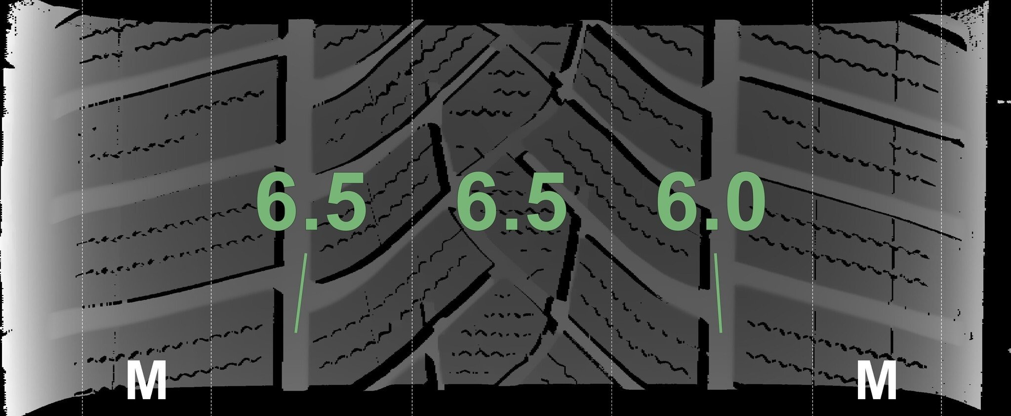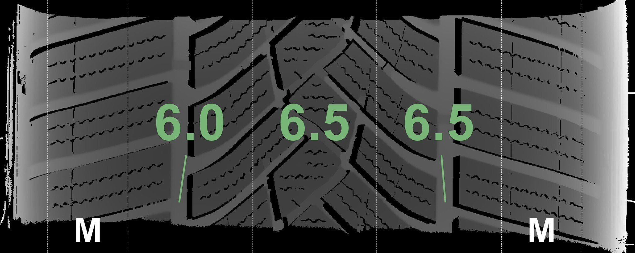 Die gemessenen Profiltiefen und die Details der Felgen sind oben angegeben.