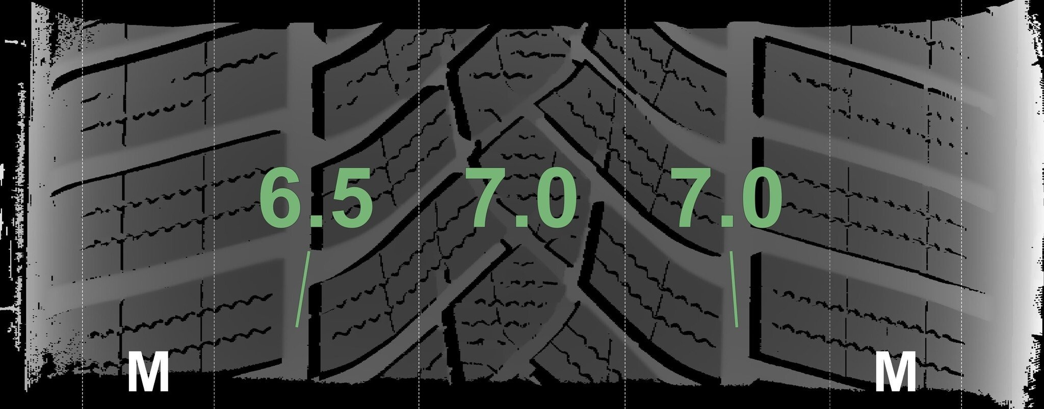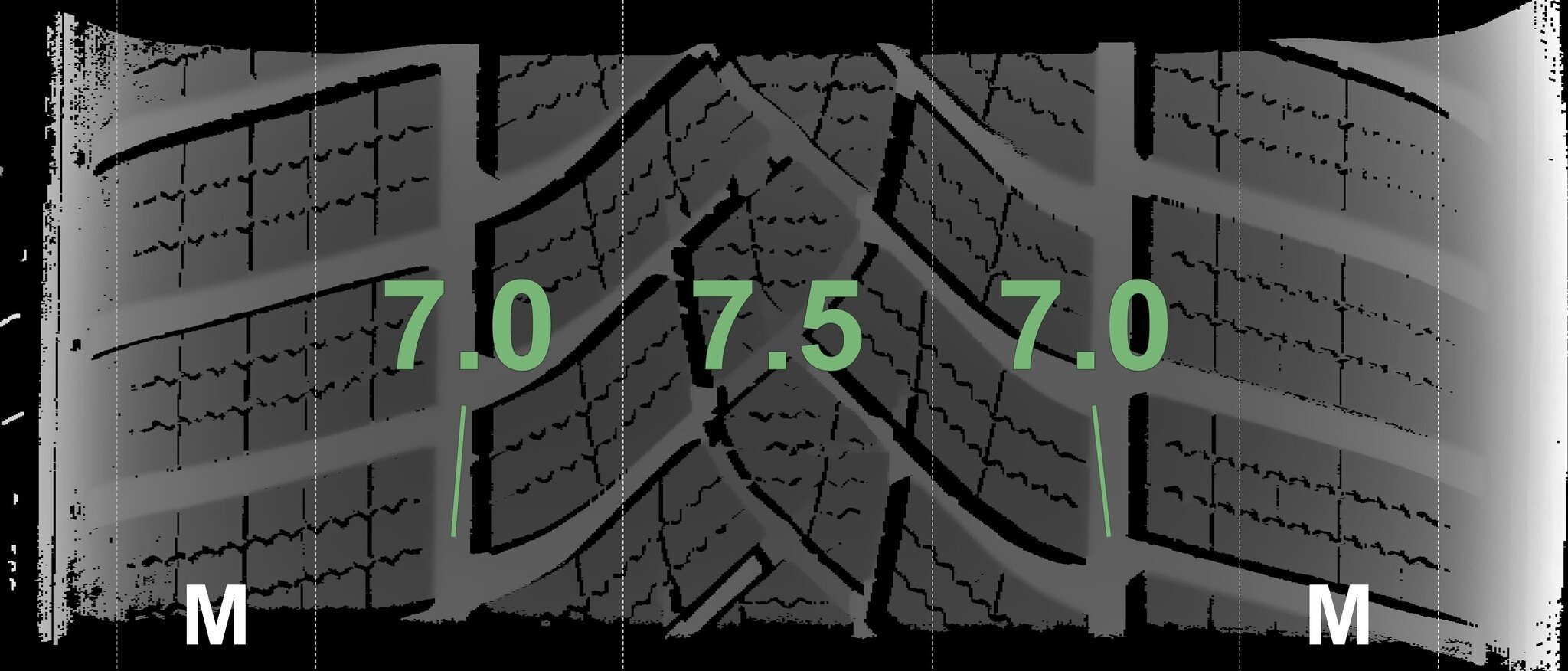 Die gemessenen Profiltiefen und die Details der Felgen sind oben dargestellt.