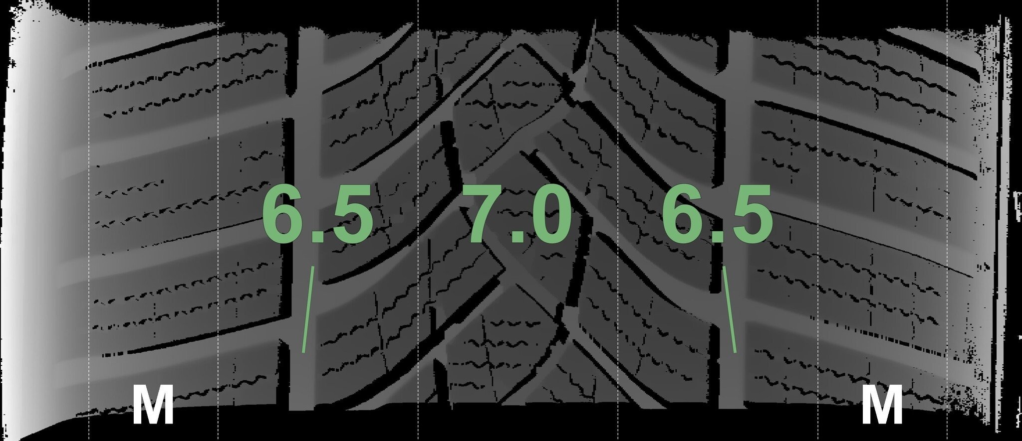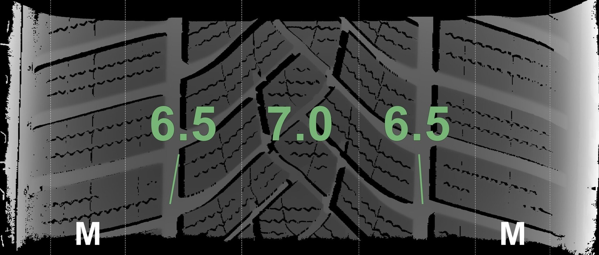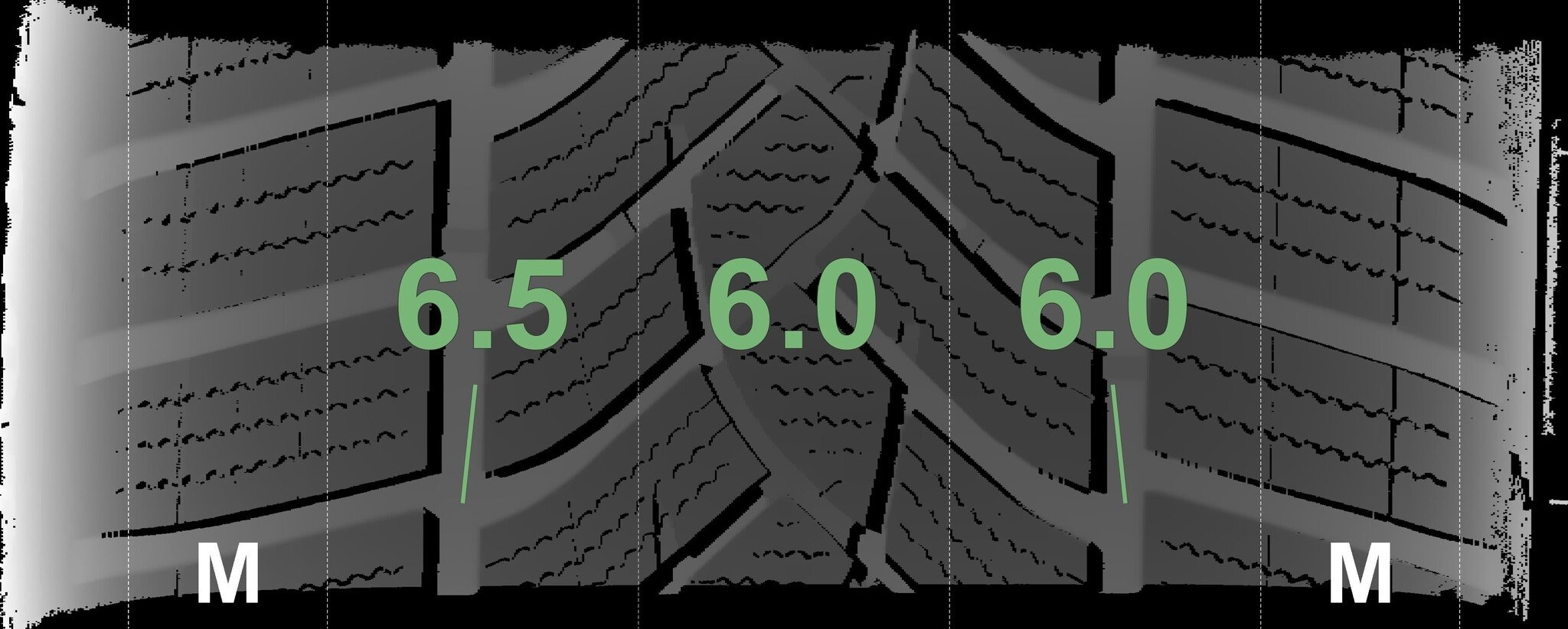 Die gemessenen Profiltiefen und die Details der Felgen sind oben dargestellt.