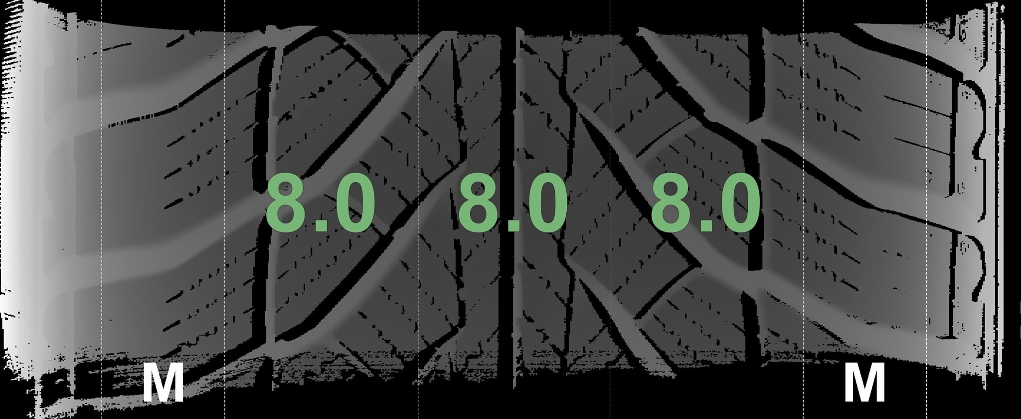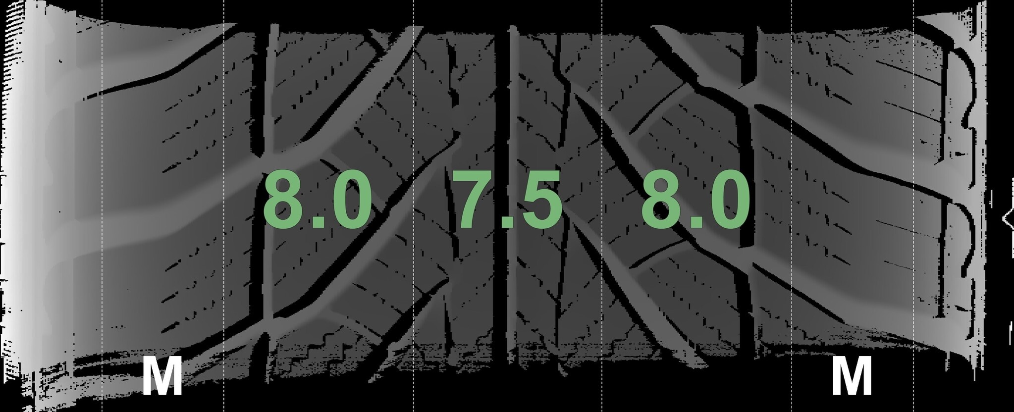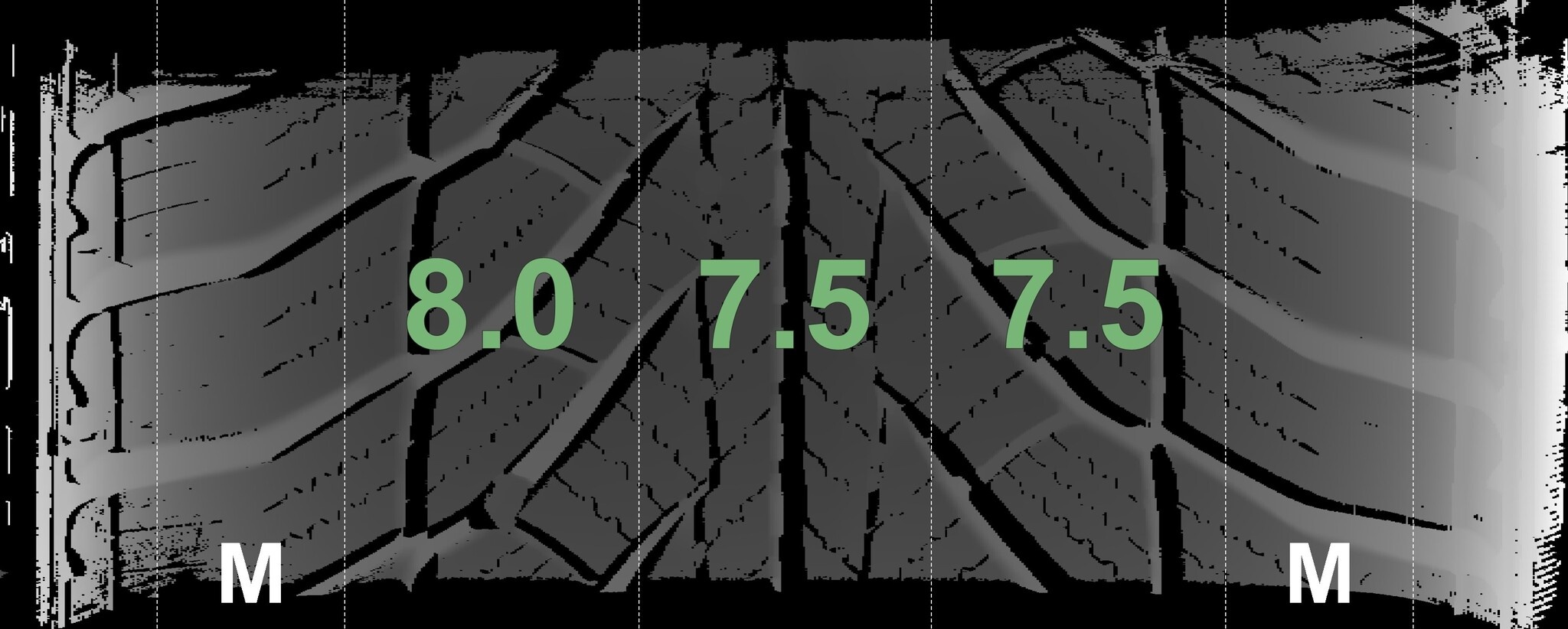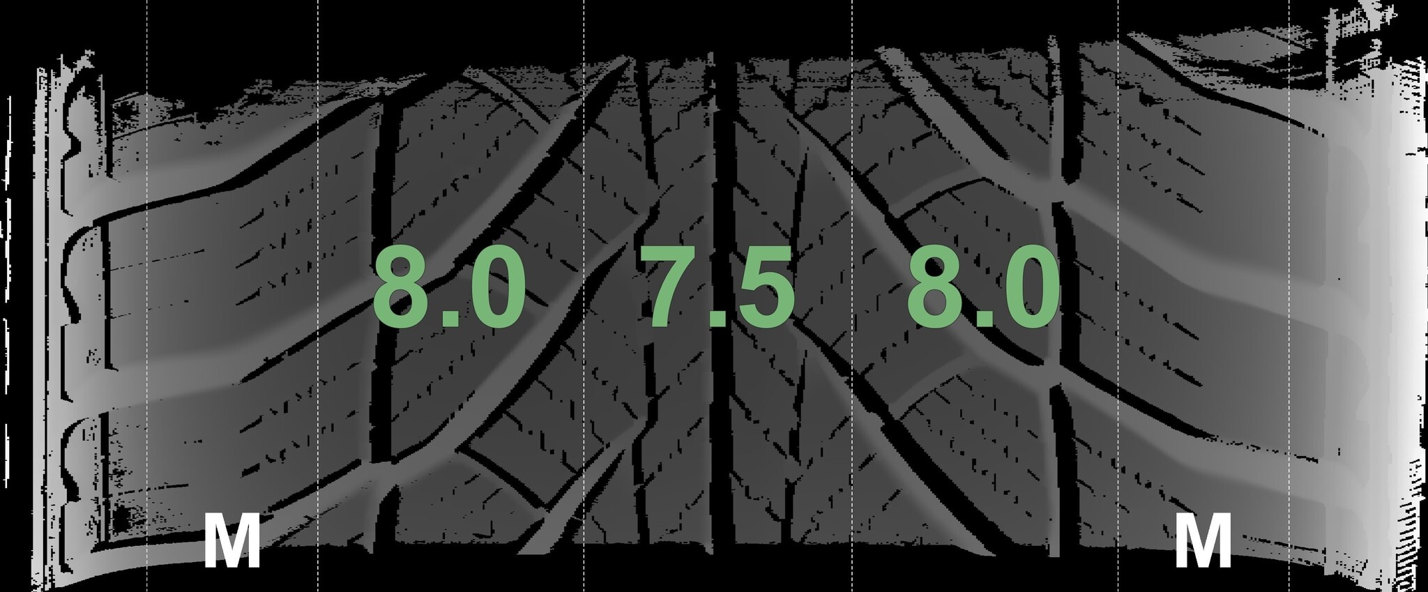 Die gemessenen Profiltiefen und Details zu den Felgen sind oben abgebildet.