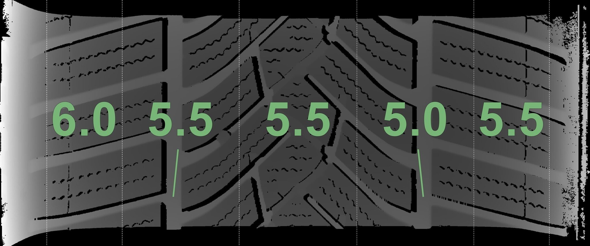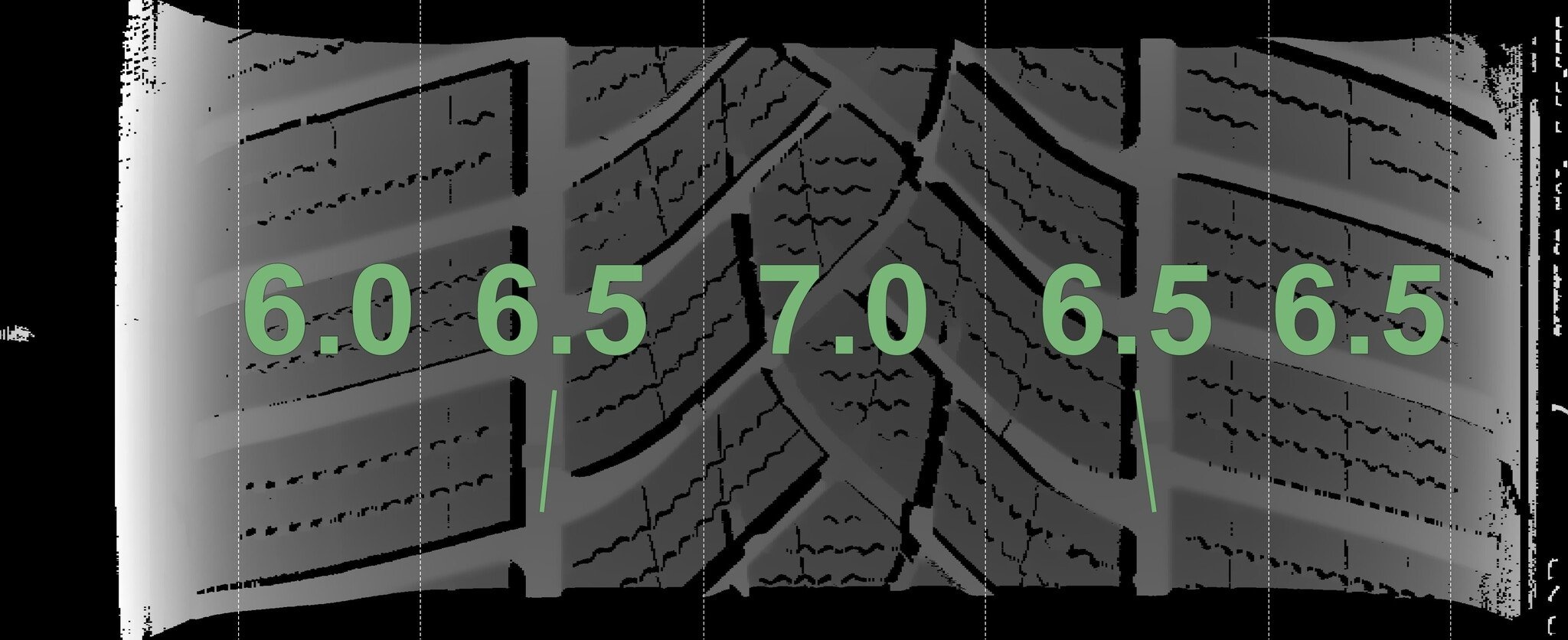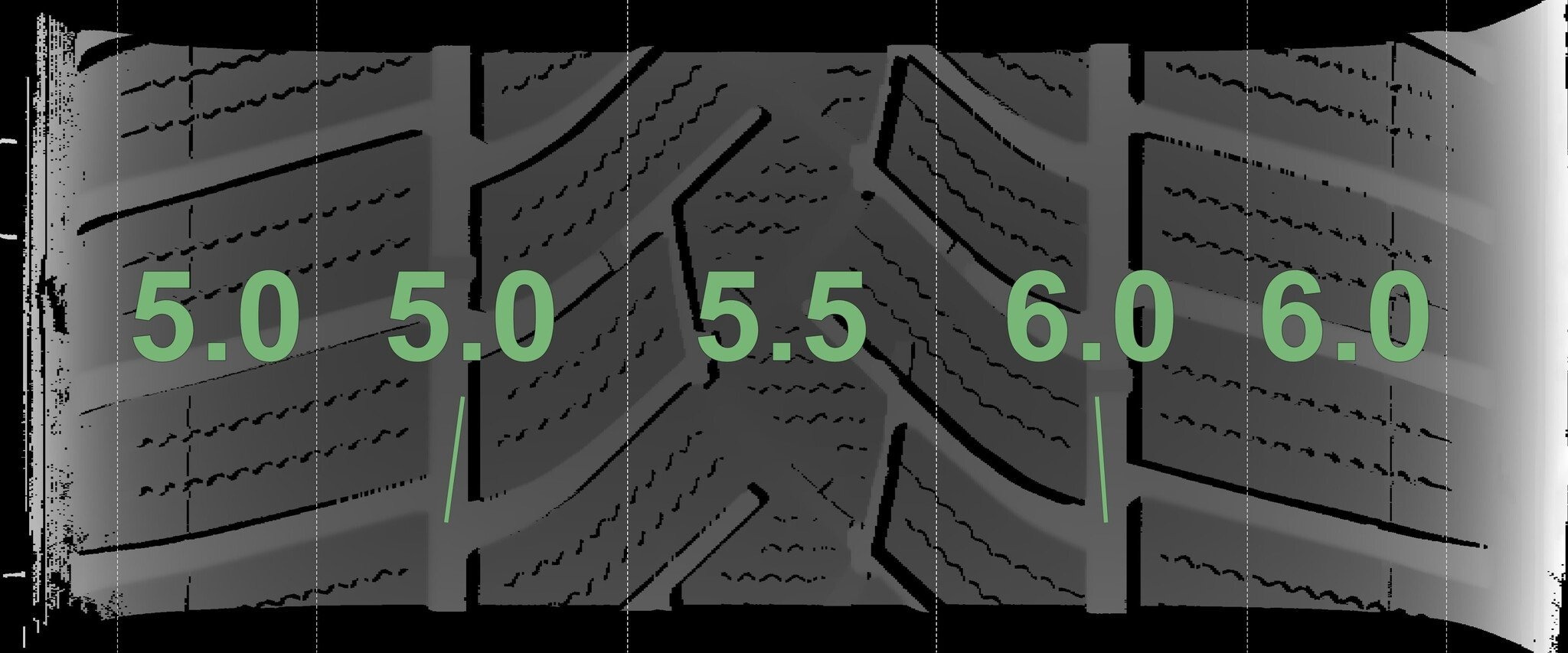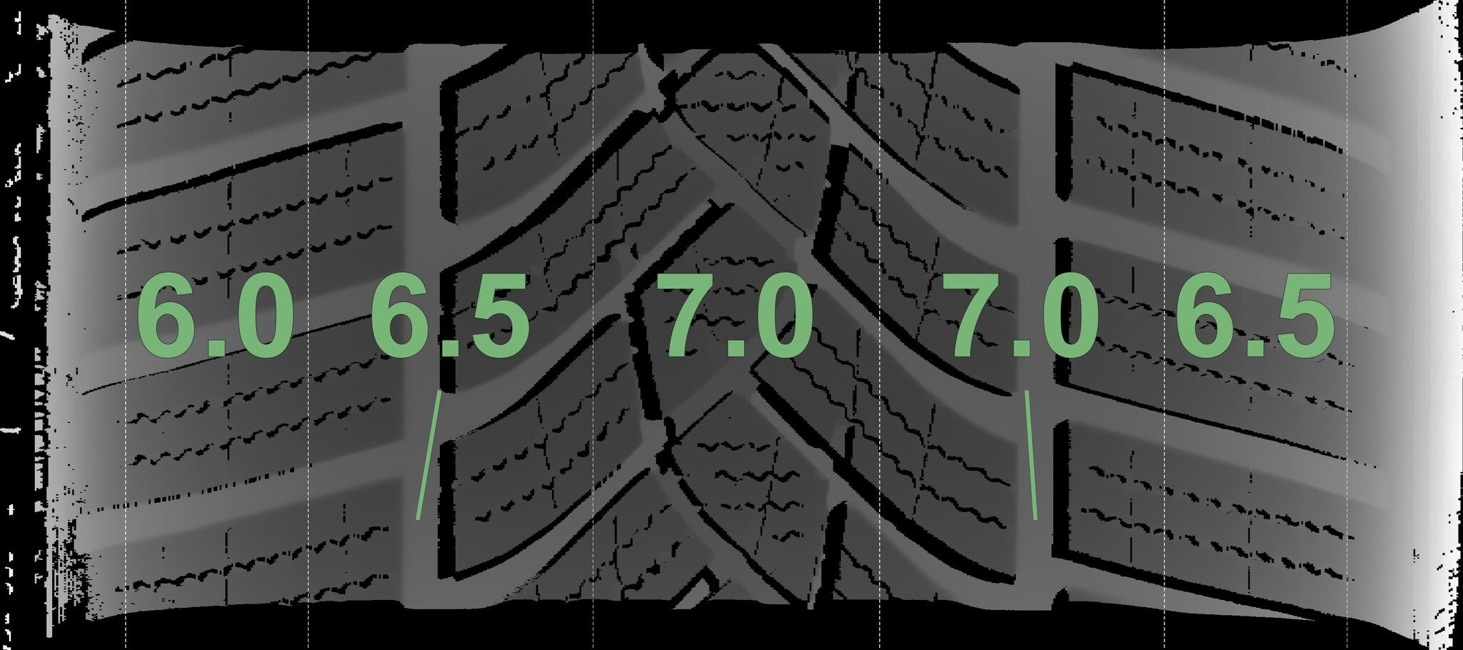 Die gemessenen Profiltiefen und Details zu den Felgen sind oben abgebildet.