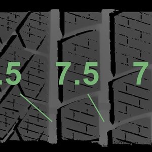 | Zustand | Profiltiefe | DOT | Vorderachse Links | Neu | 7,5 mm | 3425 |