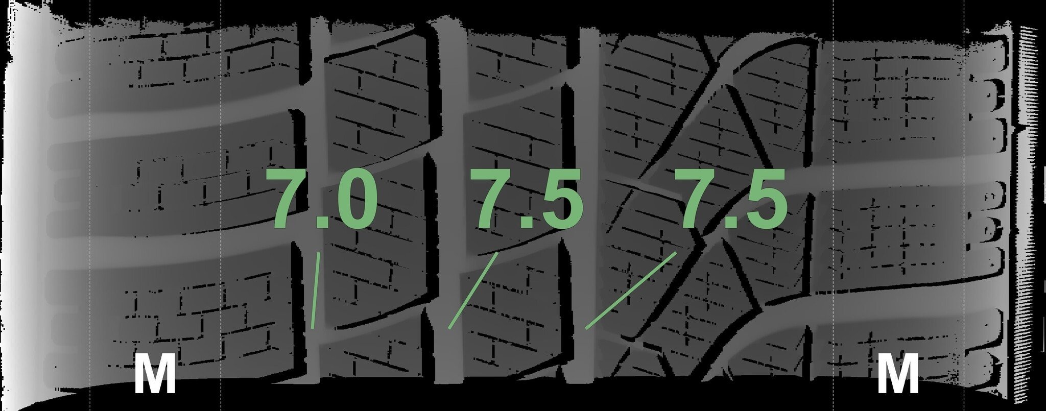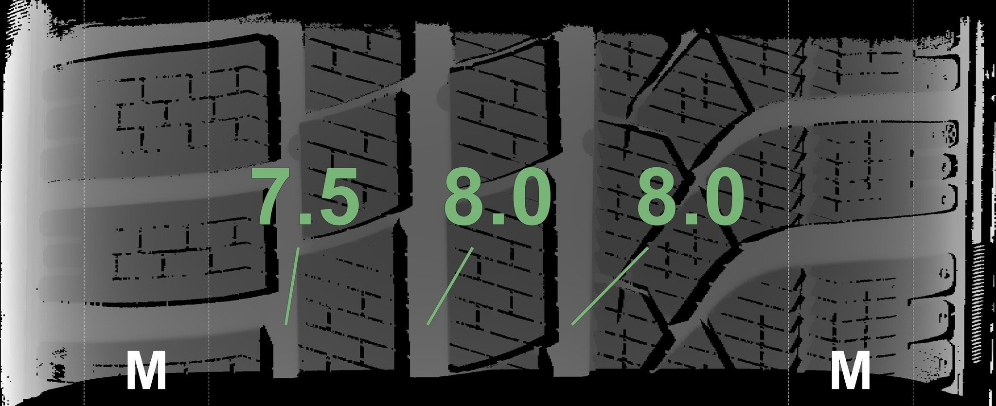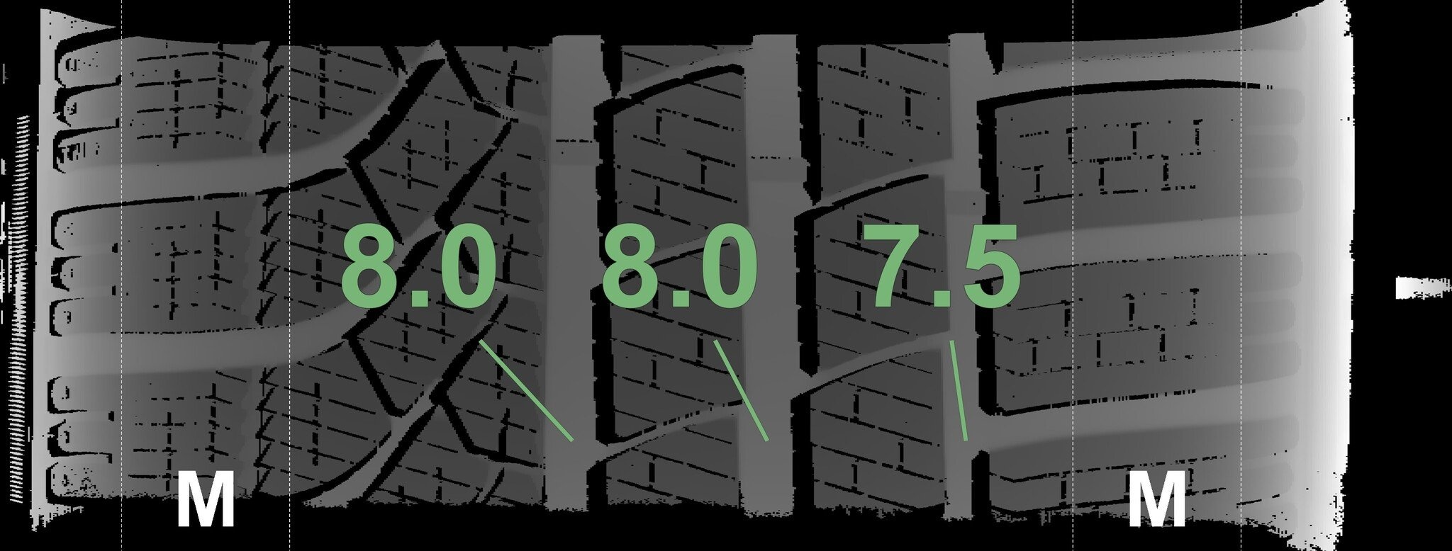 Die gemessenen Profiltiefen und Details zu den Felgen sind oben abgebildet.