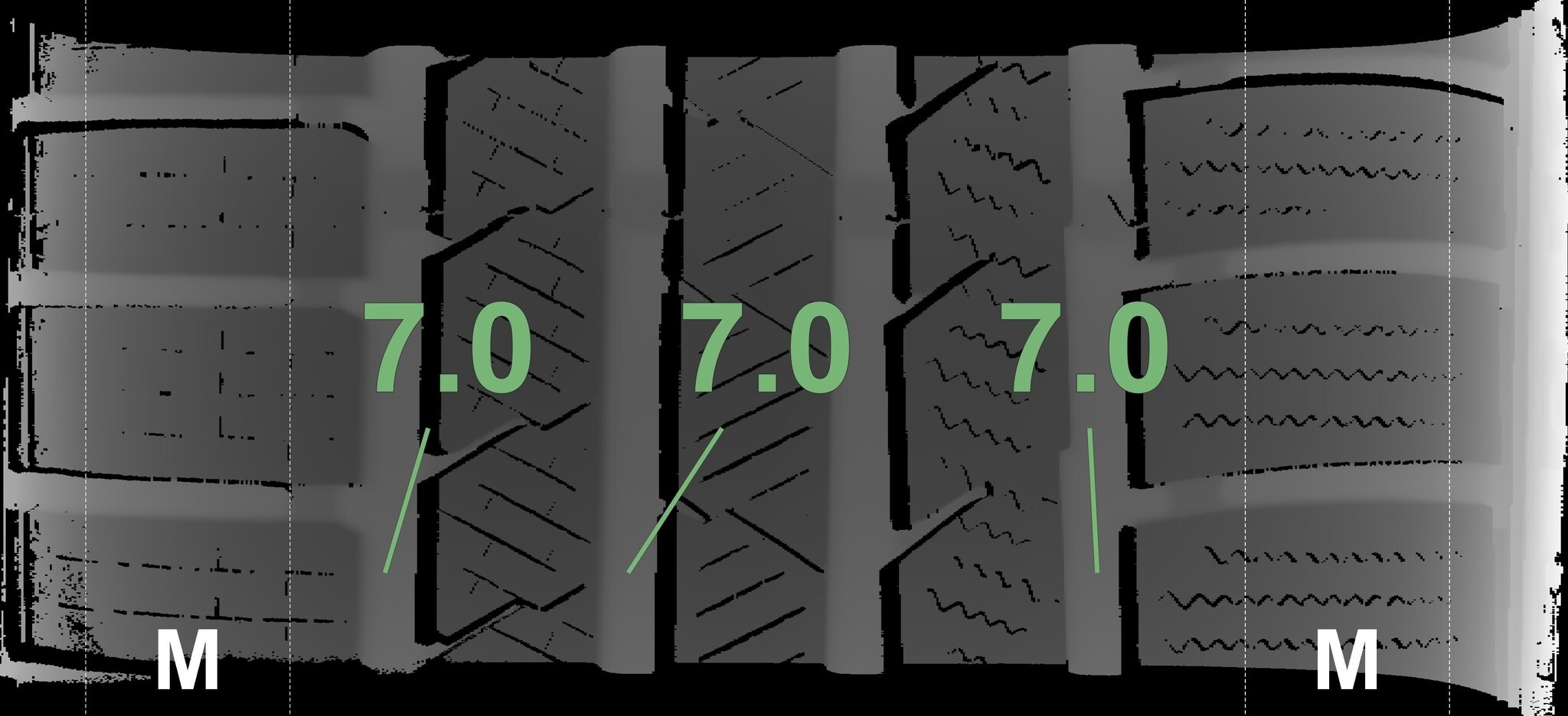 | Zustand | Profiltiefe | DOT | Vorderachse Rechts | Gebraucht | 7.0 mm | 2122 |
