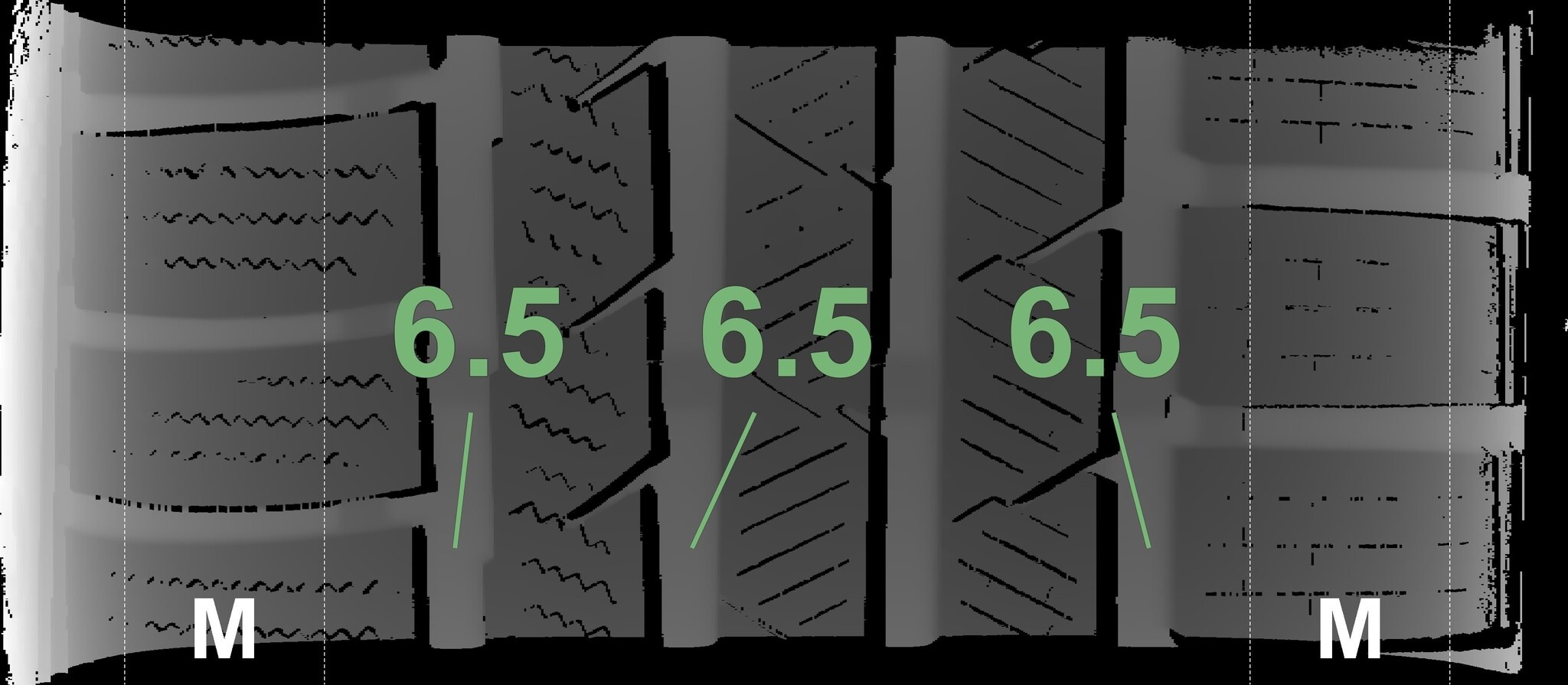 | Zustand | Profiltiefe | DOT | Vorderachse Links | Gebraucht | 6.5 mm | 2122 |