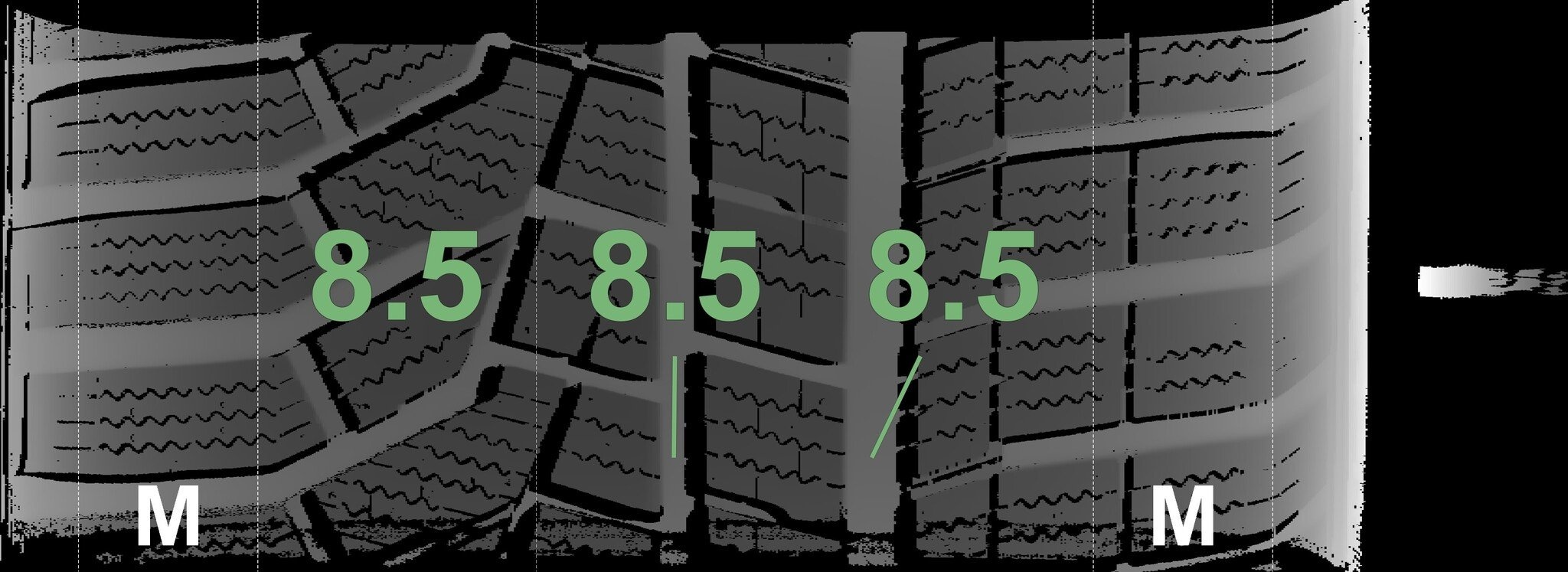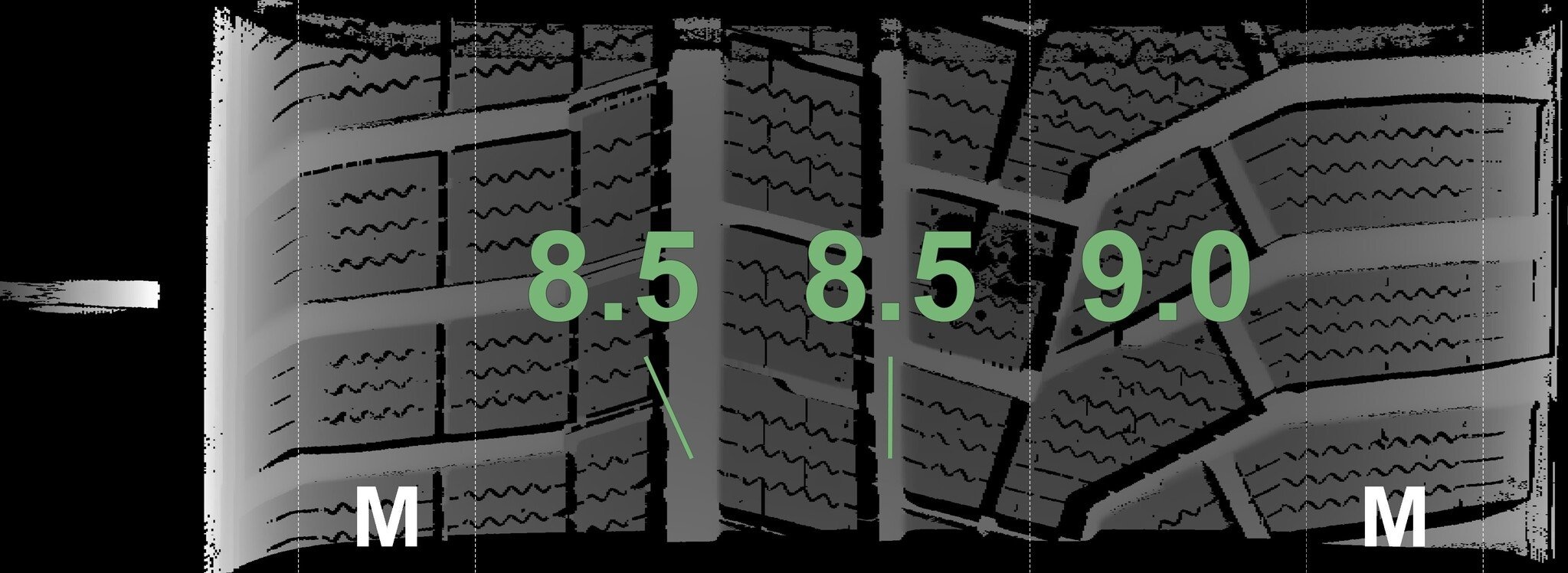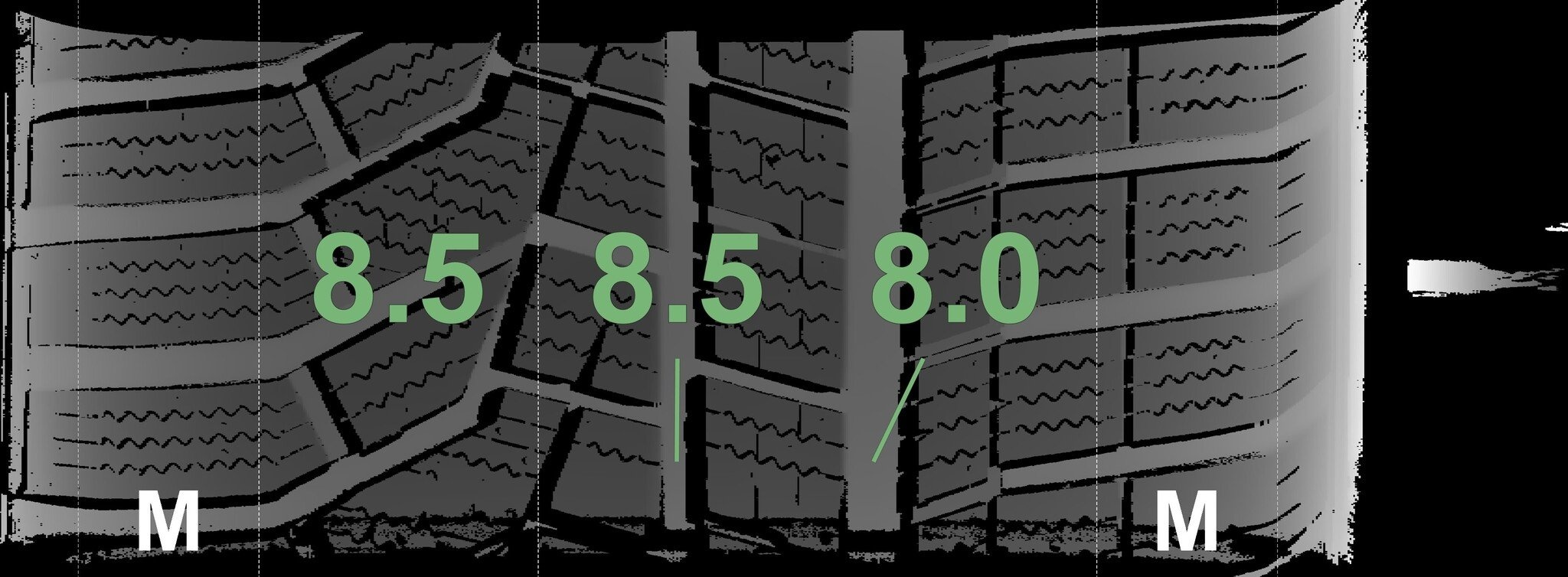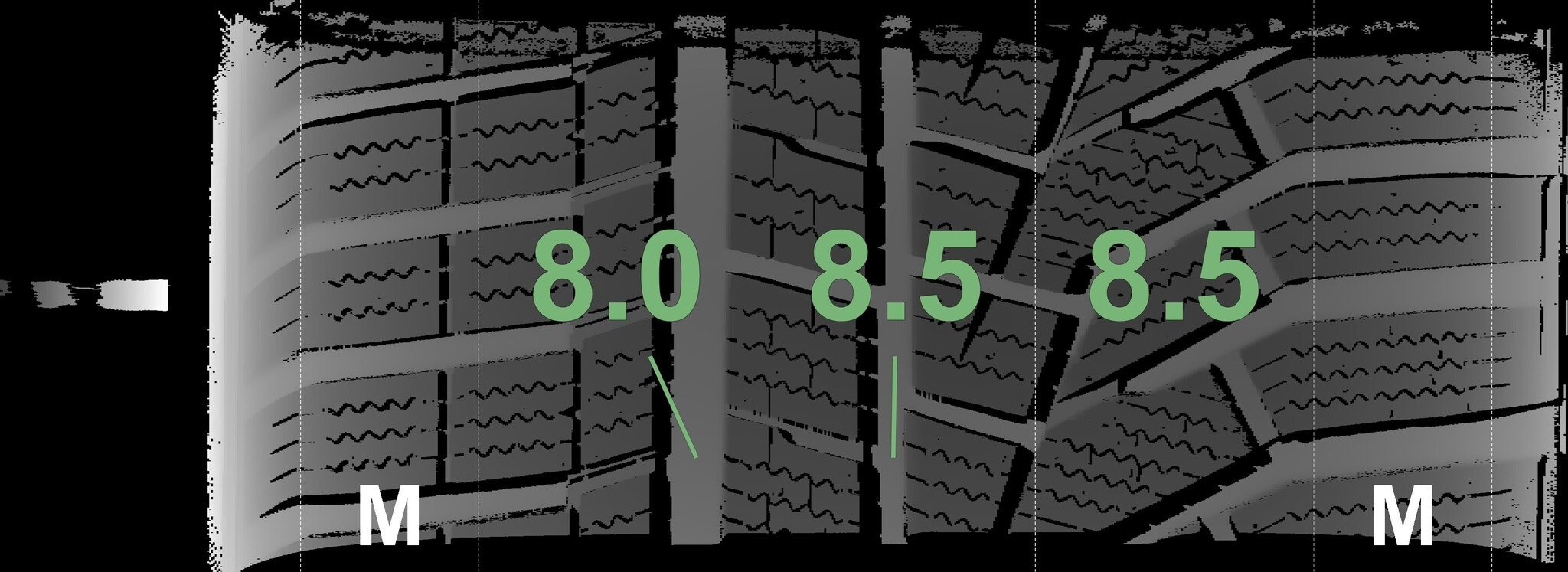 | Zustand | Profiltiefe | DOT | Vorderachse Rechts | Neu | 8.5 mm | 4924 |