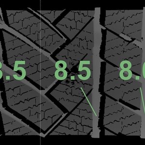 Die gemessenen Profiltiefen und Details der Felgen sind oben abgebildet.