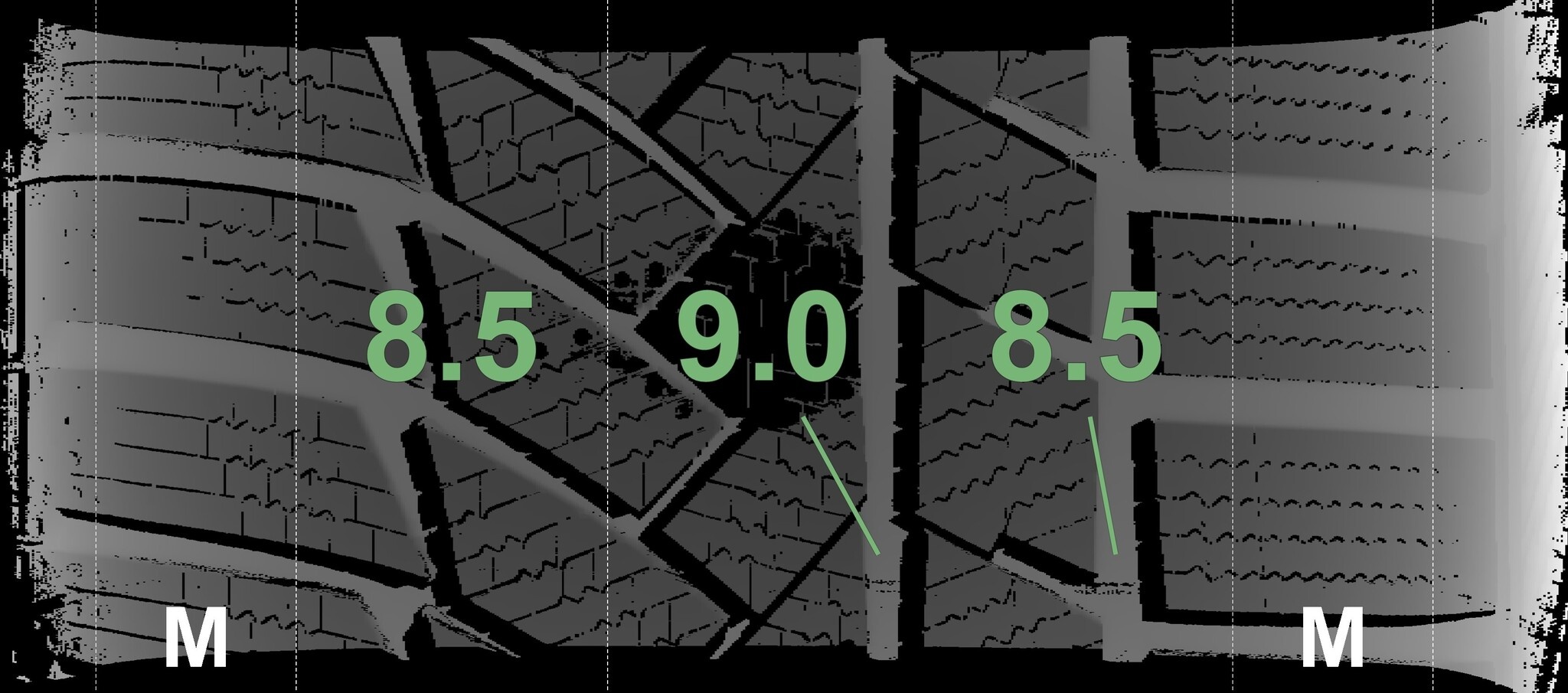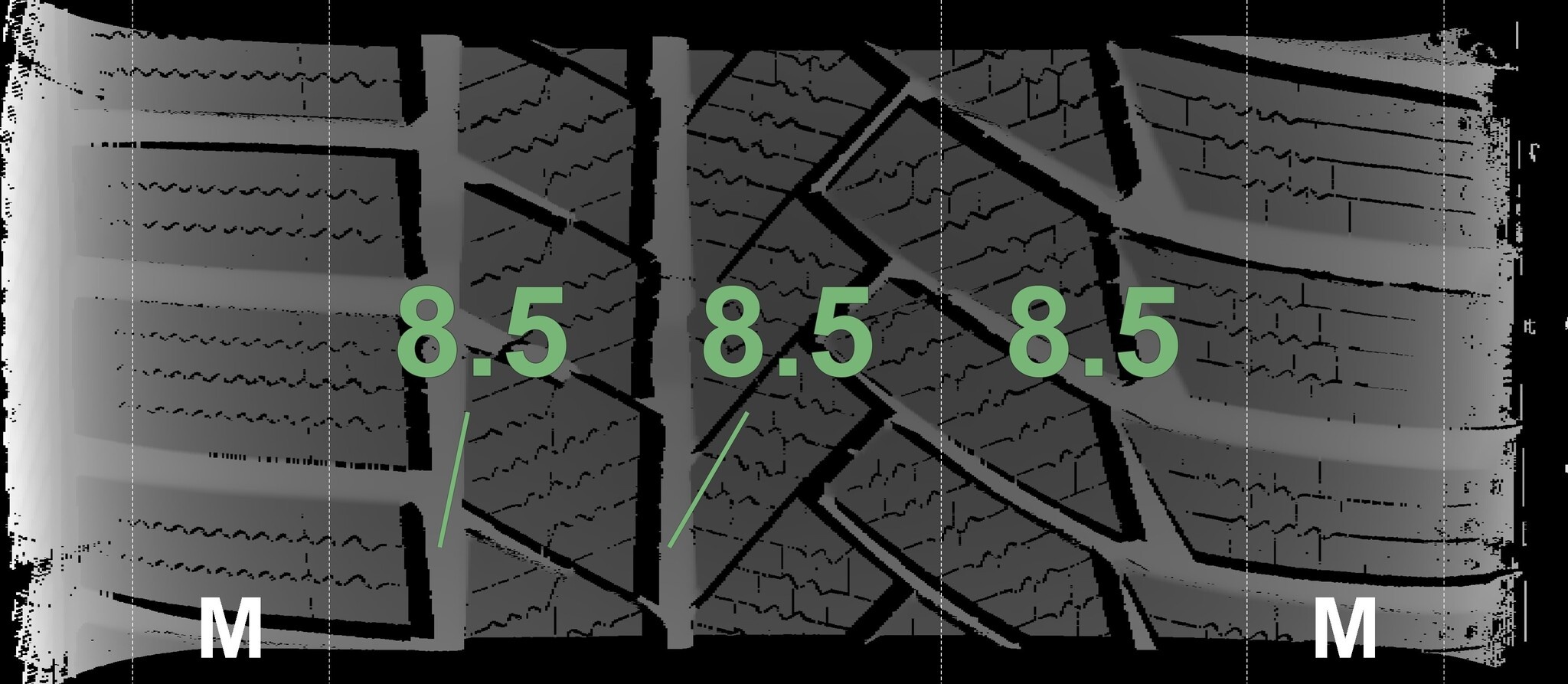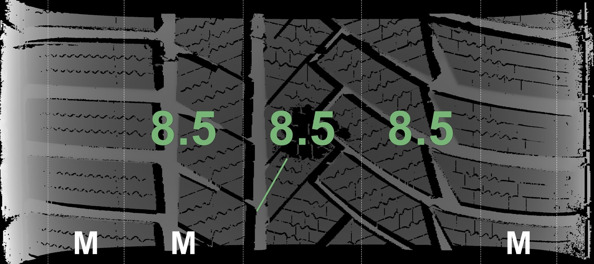 Zustand | Profiltiefe | DOT | Vorderachse Links | Neu | 8,5 mm | 3924 |