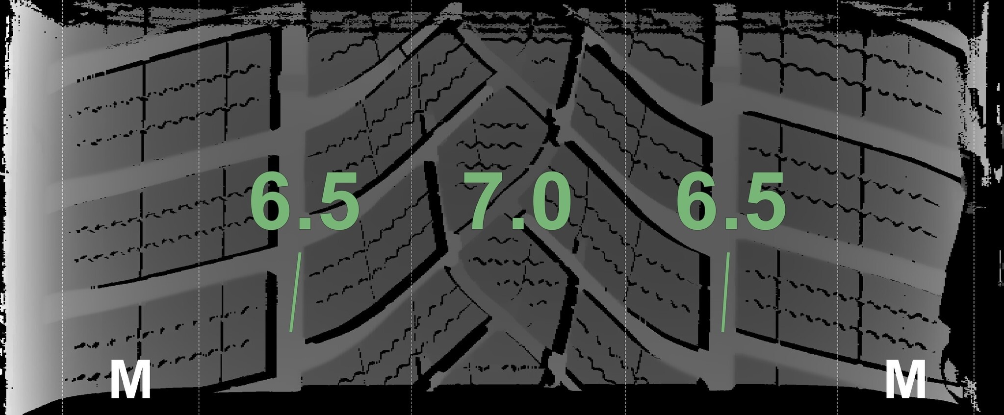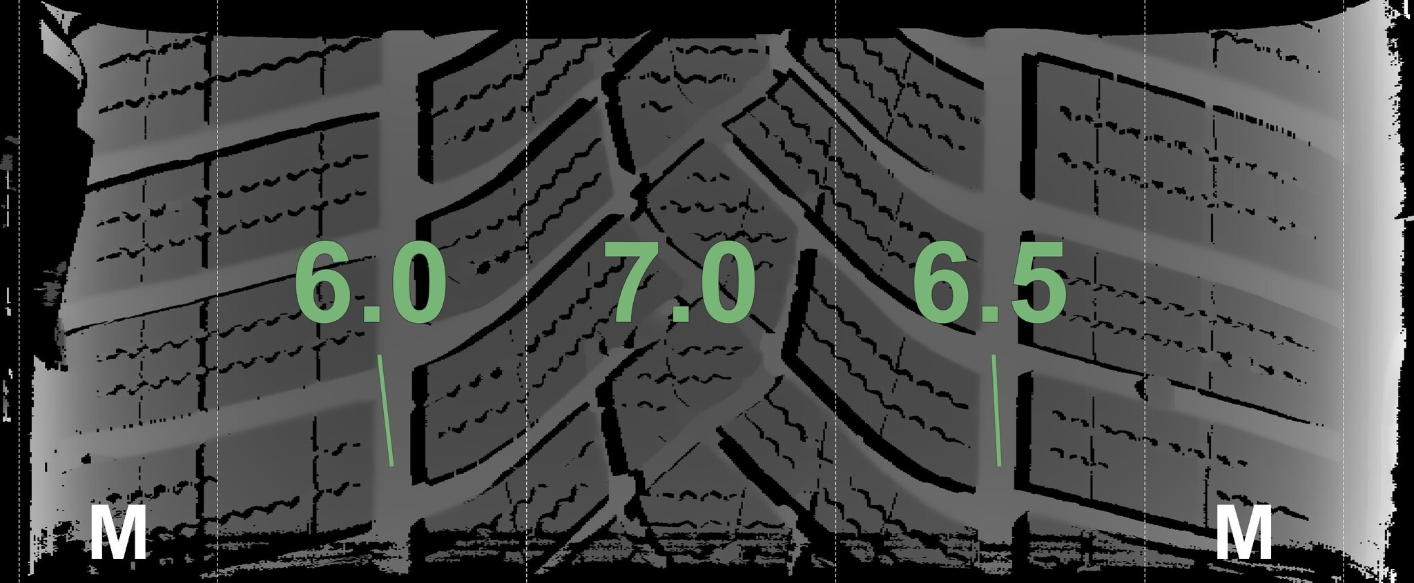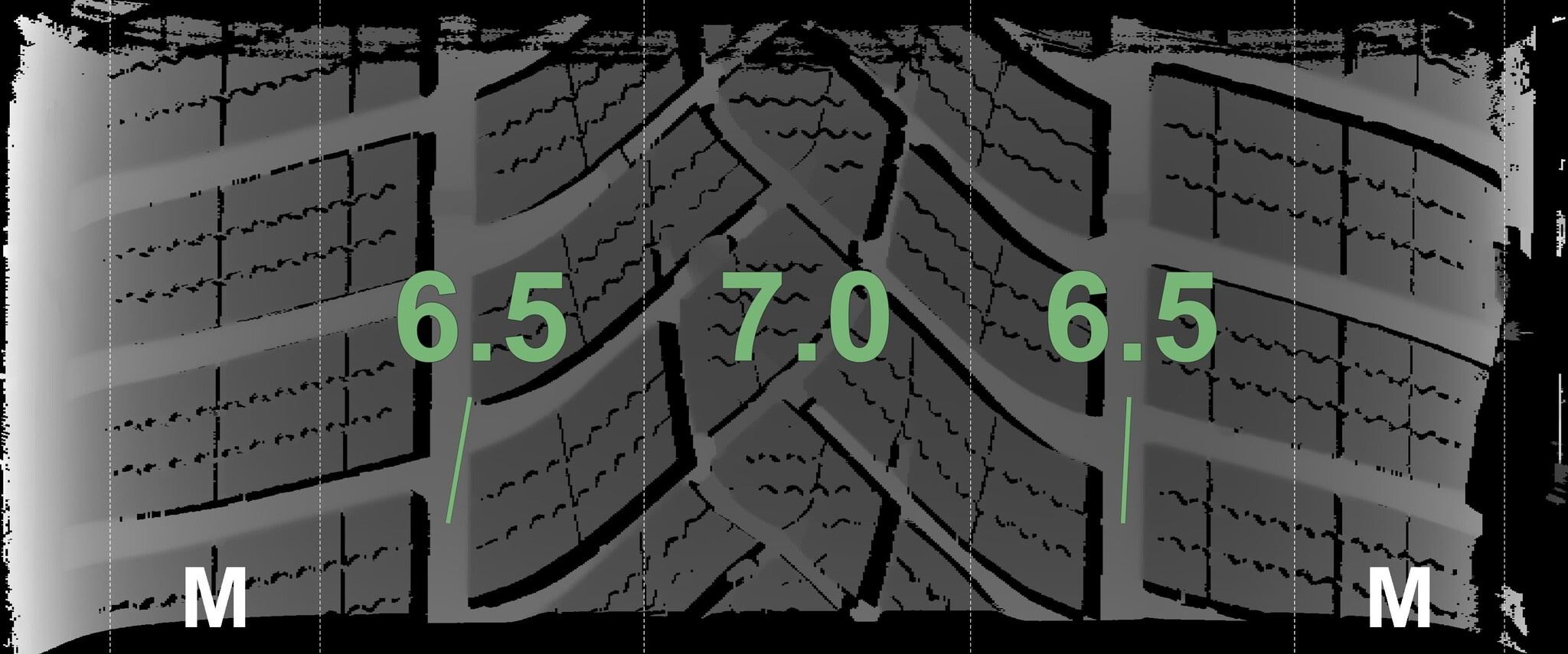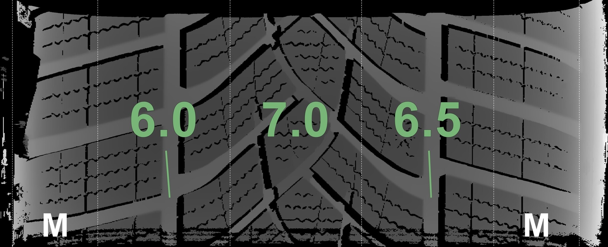 Die gemessenen Profiltiefen und die Details der Felgen sind oben angegeben.