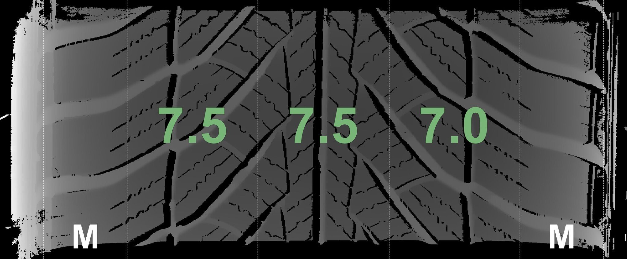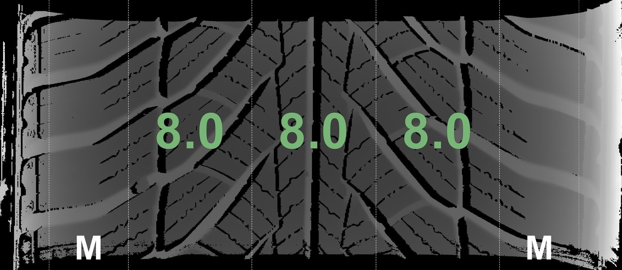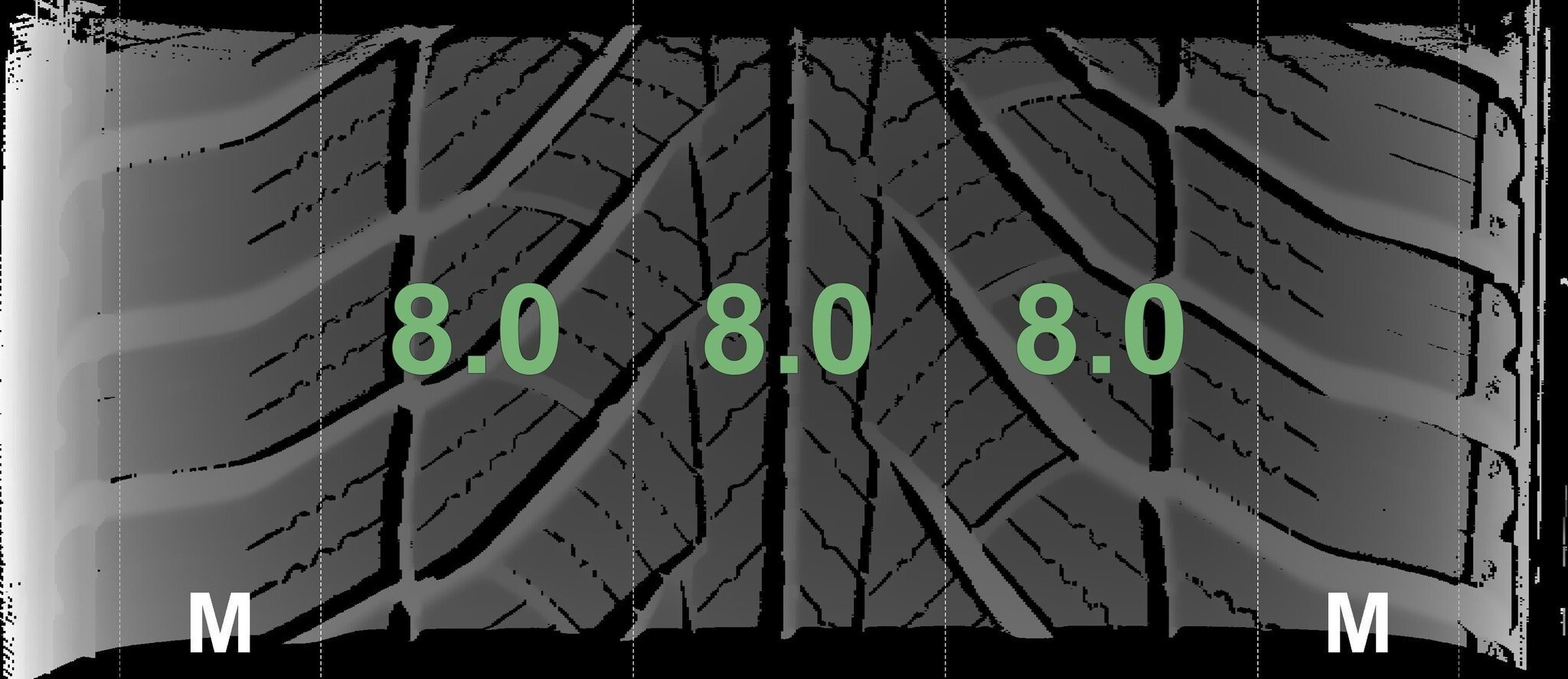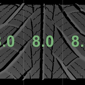 Die gemessenen Profiltiefen und die Details der Felgen sind oben dargestellt.