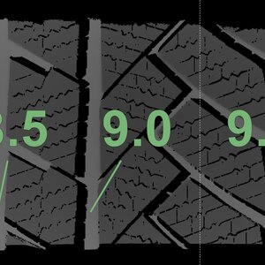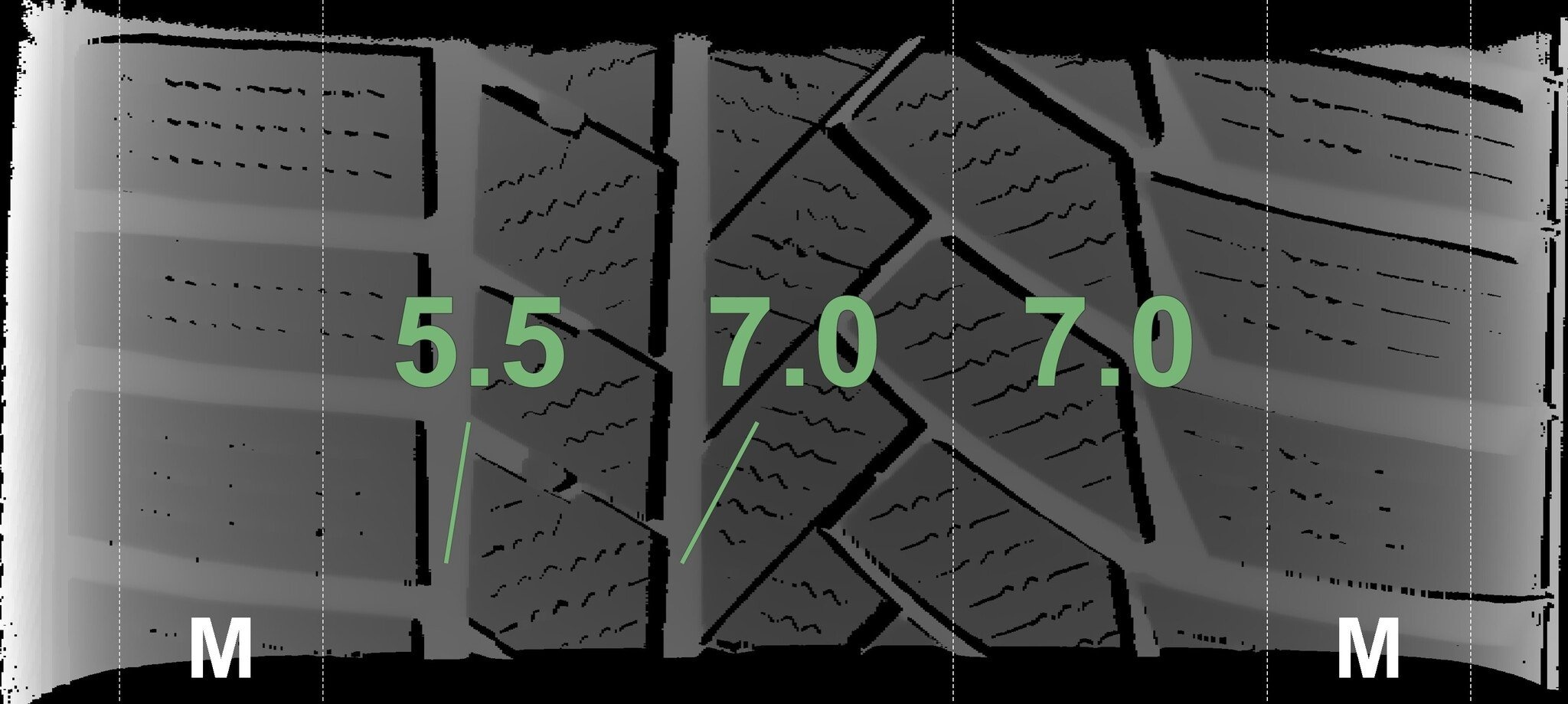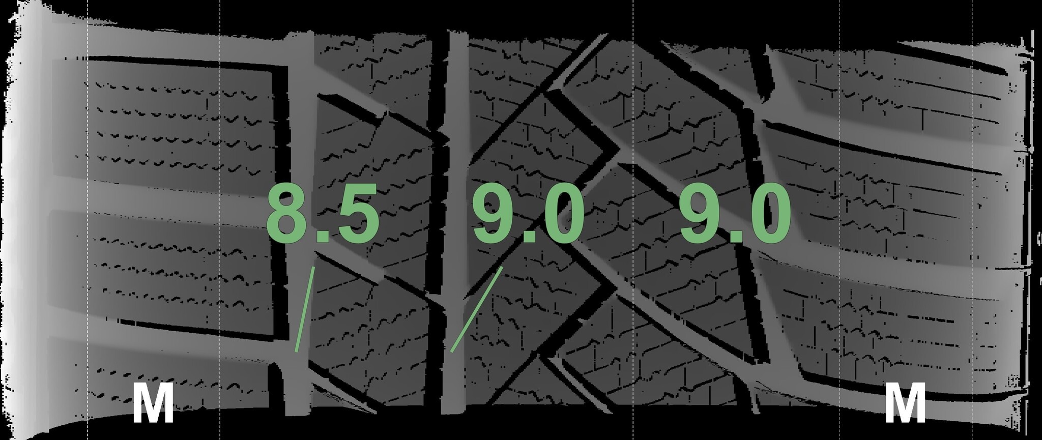 Die gemessenen Profiltiefen und die Details der Felgen sind oben dargestellt.
