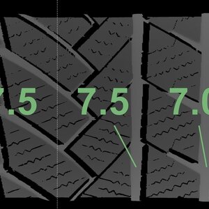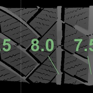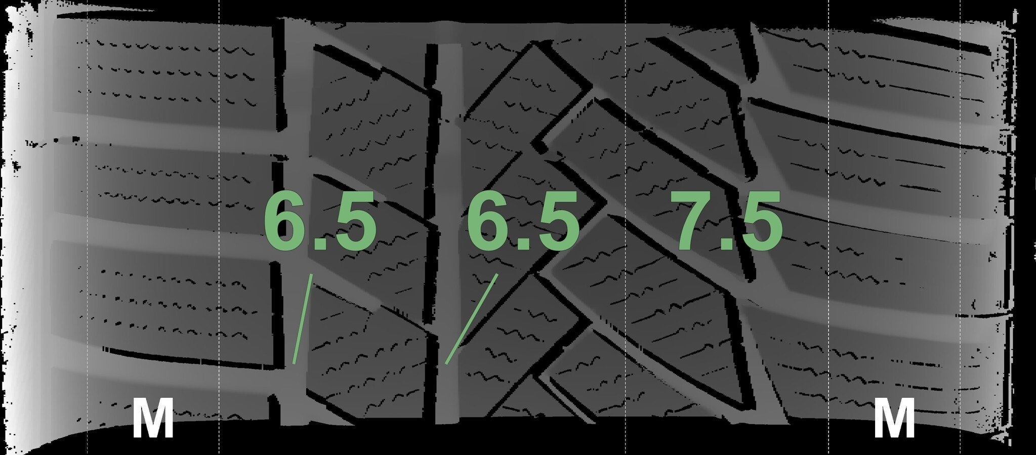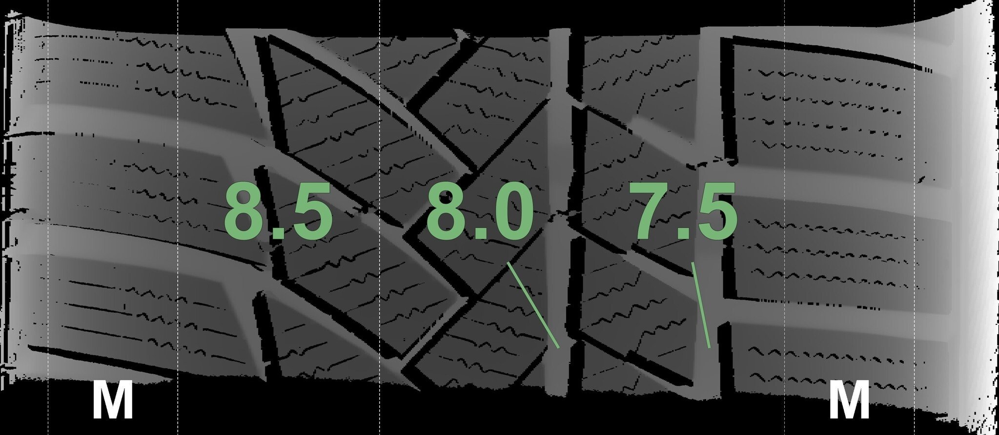 Die gemessenen Profiltiefen und die Details der Felgen sind oben aufgeführt.