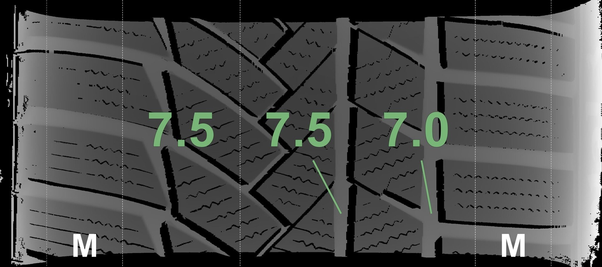 | Zustand | Profiltiefe | DOT | Vorderachse Rechts | Gebraucht | 7.3 mm | 2124 |