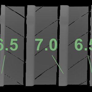 | Zustand | Profiltiefe | DOT | Vorderachse Rechts | Demo-Noppen noch sichtbar | 6.7 mm | 2423 |
