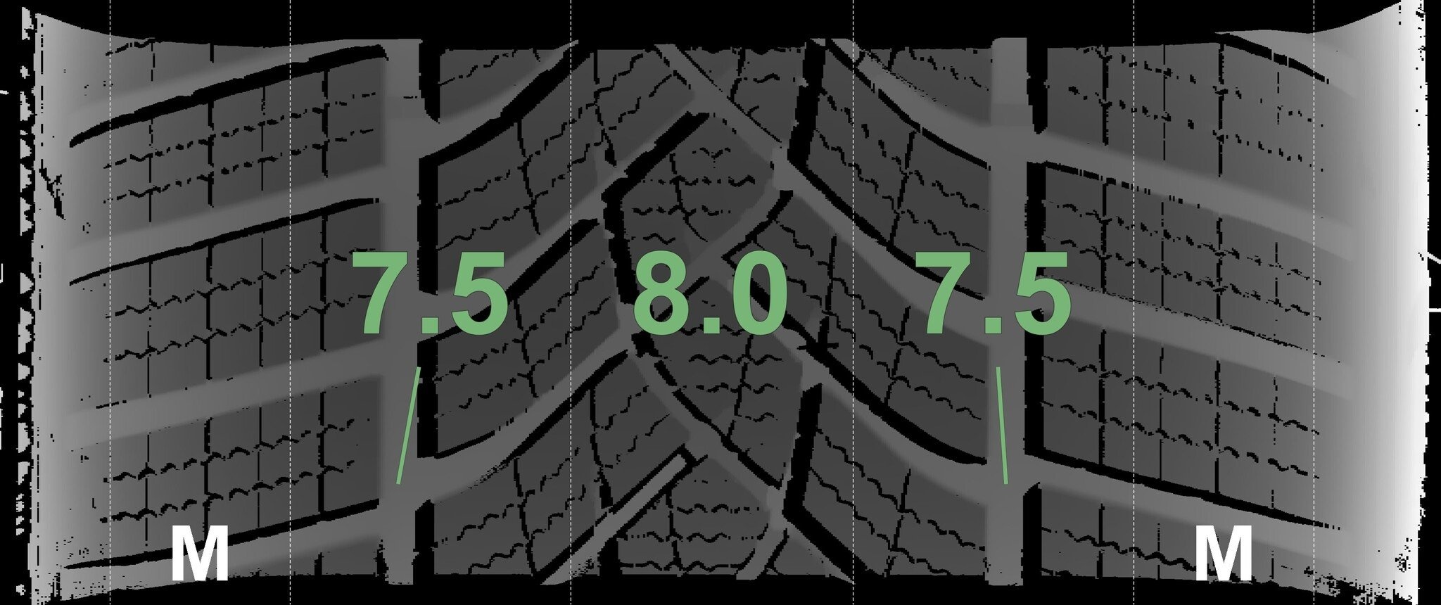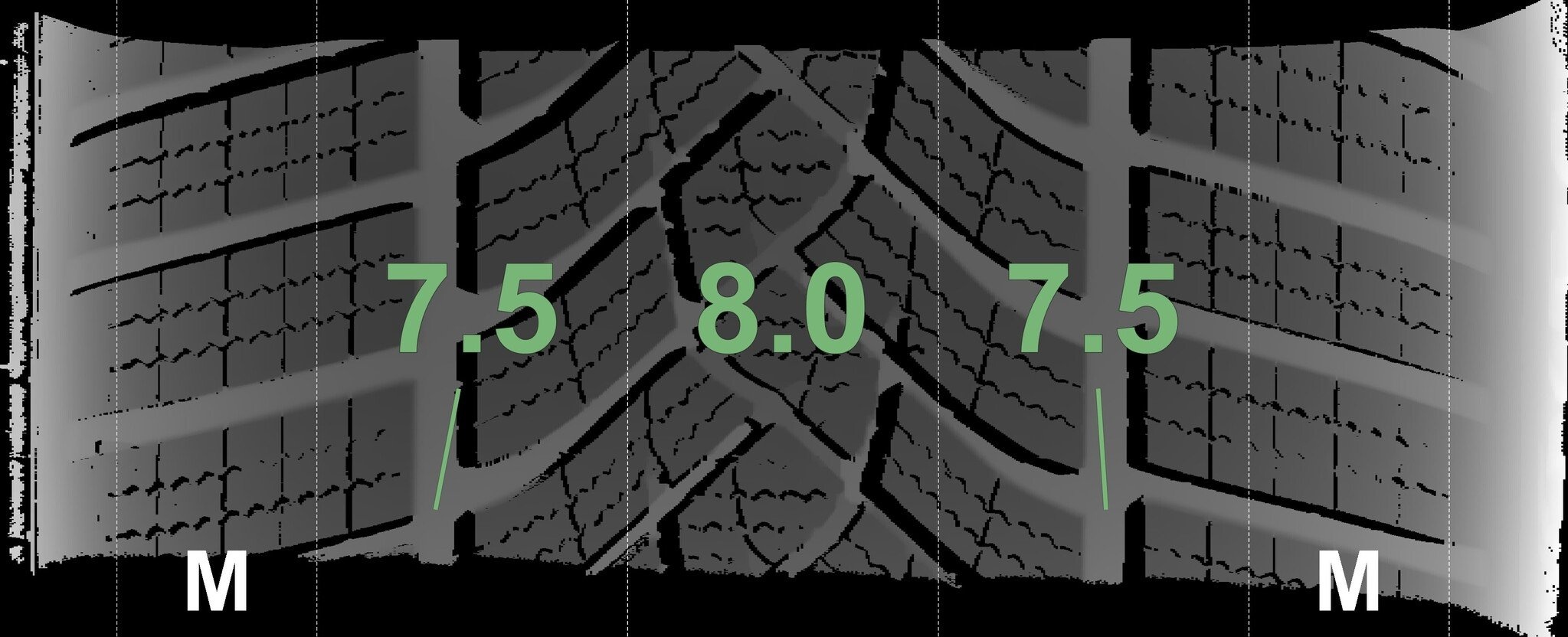 | Zustand | Profiltiefe | DOT | Vorderachse Links | Neu | 7.7 mm | 2725 |